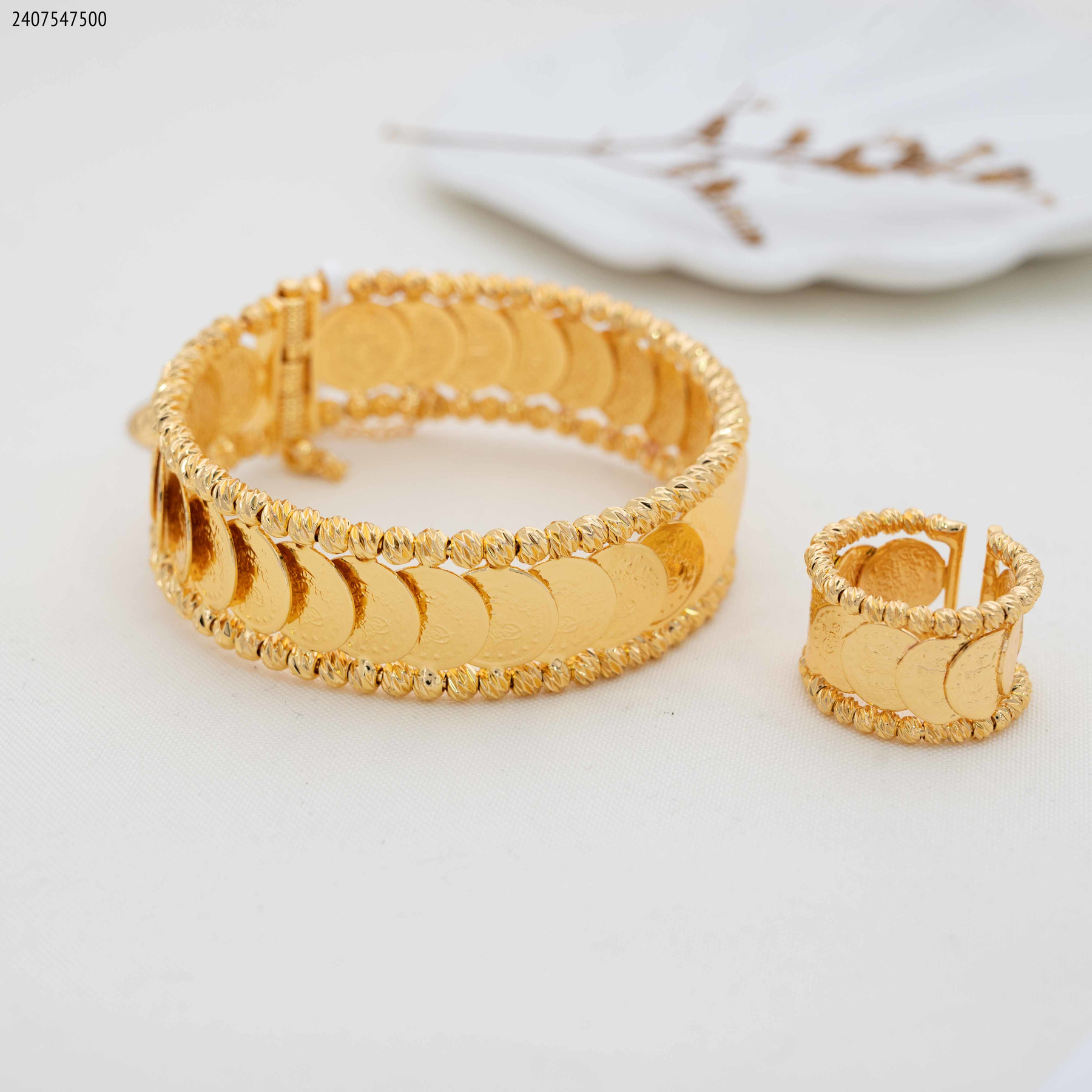 اسوارة صف ليرات تعليقة ليرة مع خاتم ليرات اطار طابات