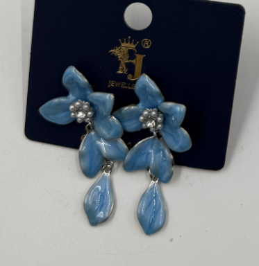 حلق انيق بتصميم زهرة، يتميز ببتلات مطلية بالوان مميزة.