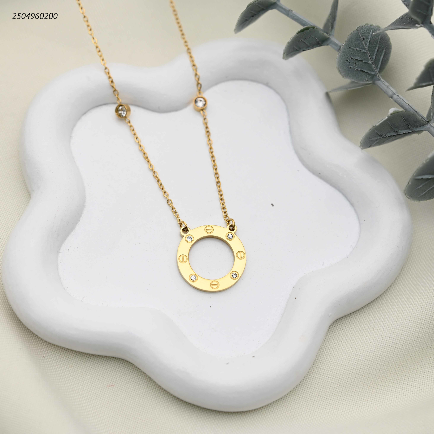 سنسال ماركة يتميز بقلادة دائرية مزينة بمسامير صغيرة وفصوص لامعة.