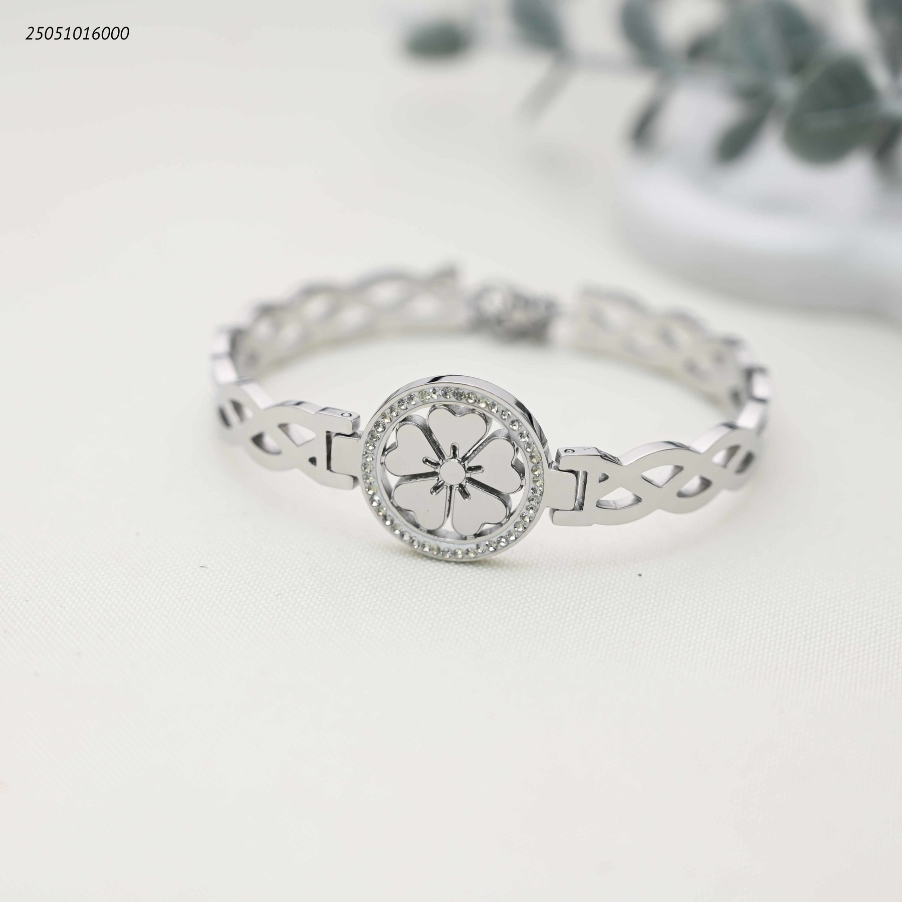اسوارة الزهرة الأنيقة بإطار كريستالي وسلسلة مزخرفة