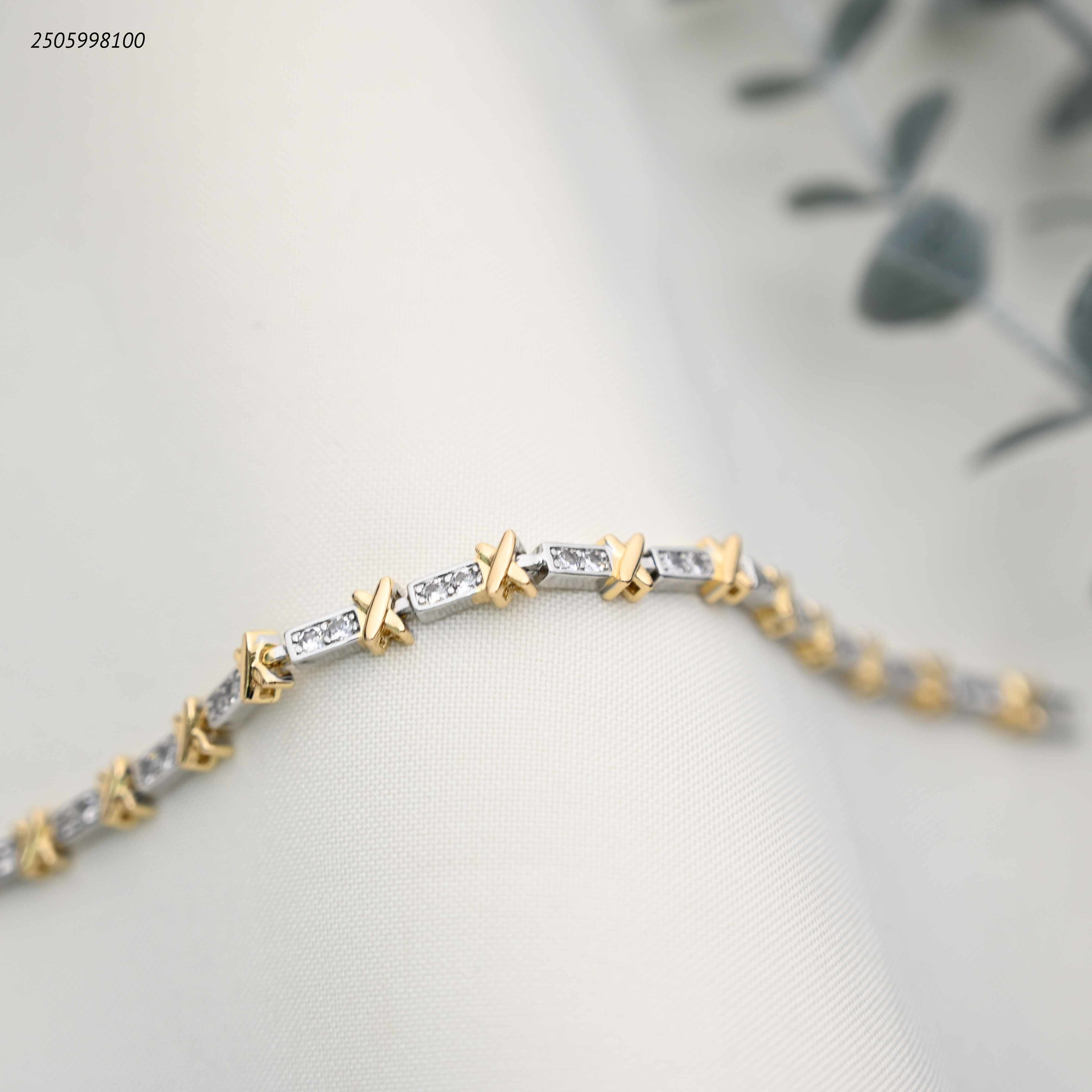 سوار ذهبي وفضي بتصميم X وفصوص زركون مستطيلة