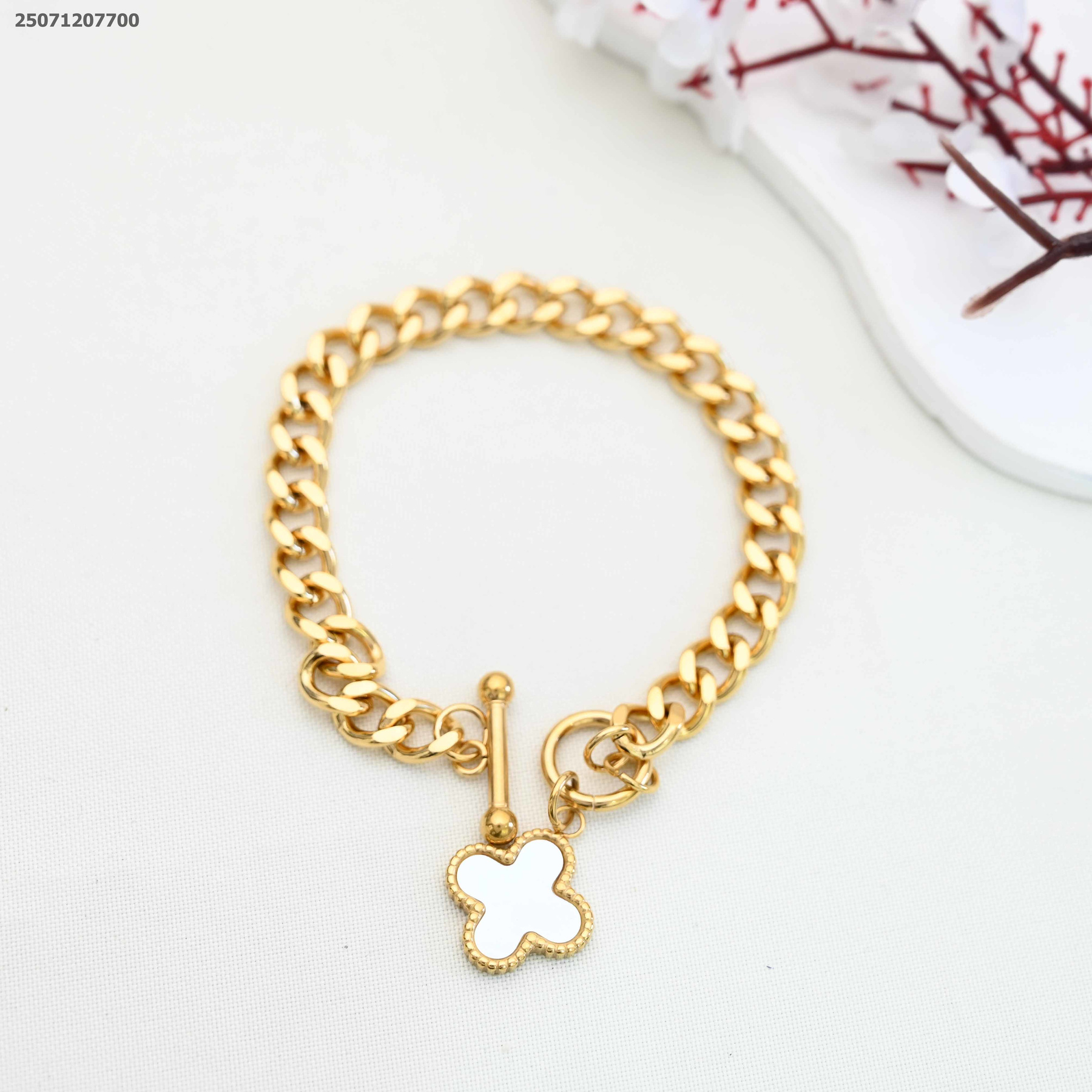 اسوارة جنزير ماركة مع تعليقة وردة رباعية لون أبيض