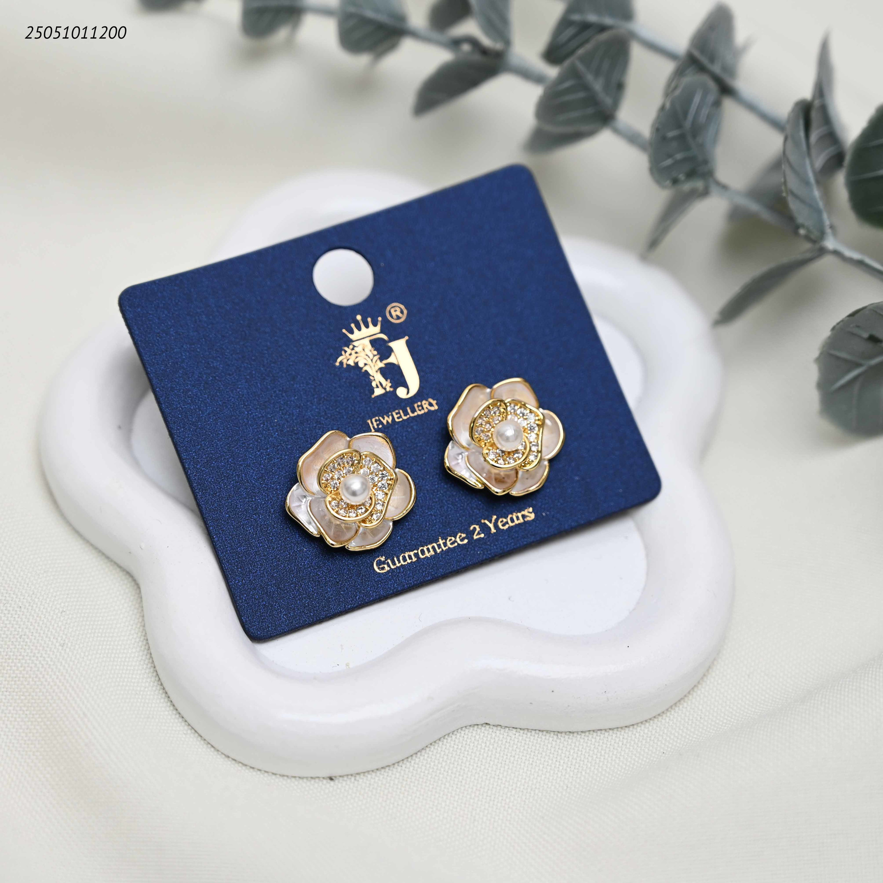 حلق على شكل وردة ملونة مع زركون