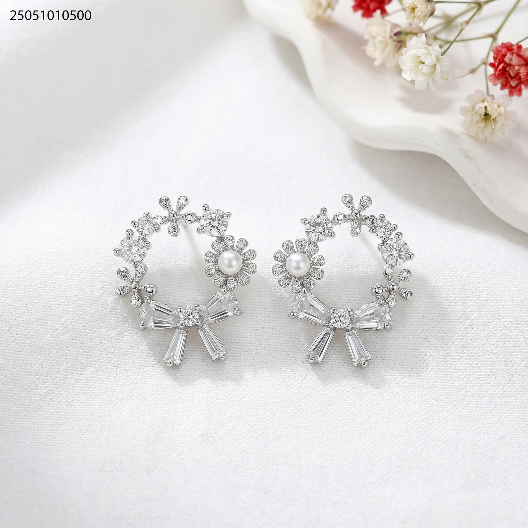 حلق على شكل حلقة ملونة بورود و زركون