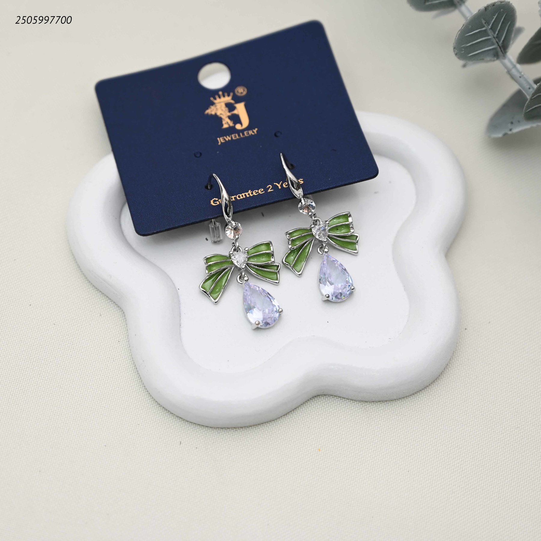 أقراط أذن متدلية بتصميم فيونكة وكريستال على شكل دمعة