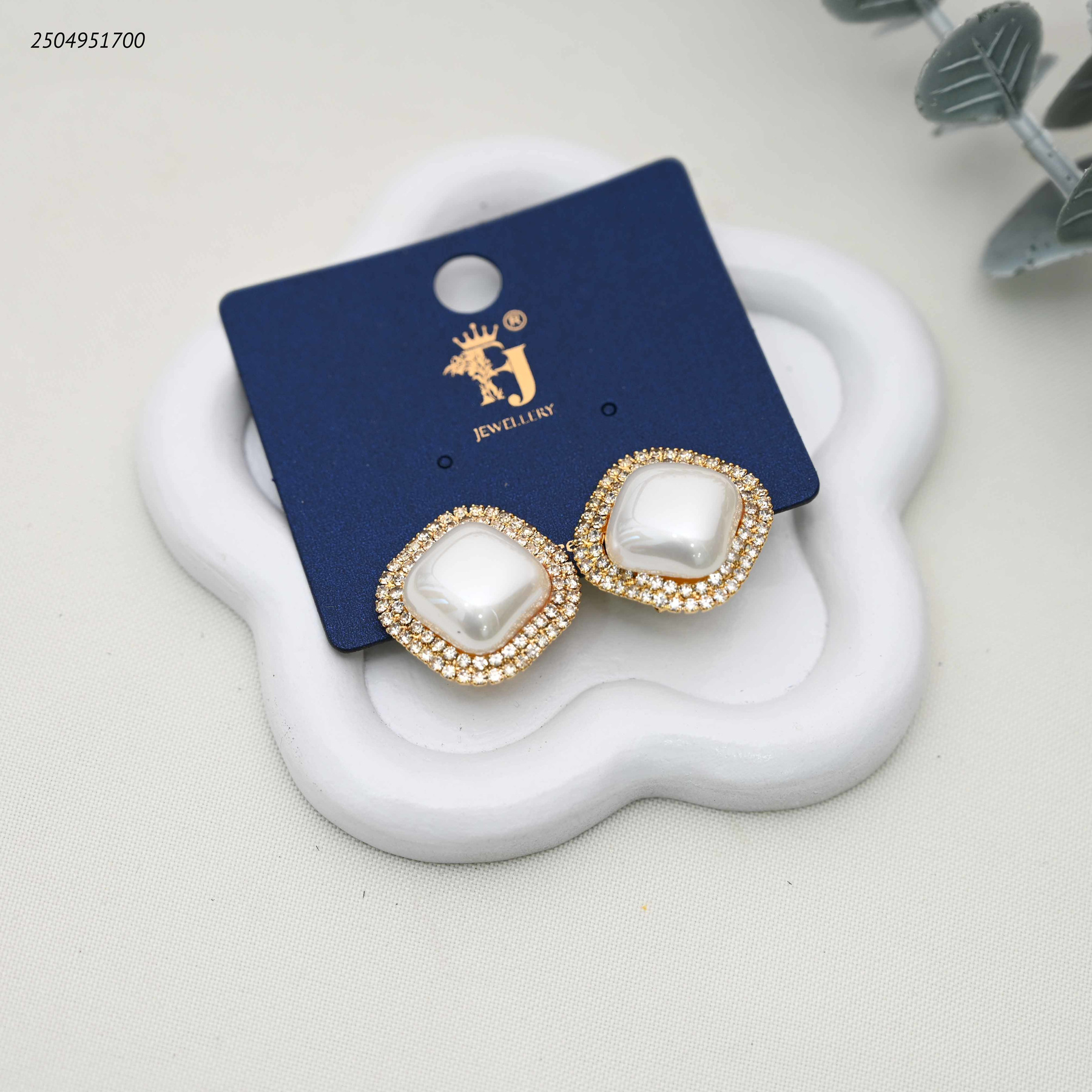 حلق على شكل وسادة من اللؤلؤ محاط بالزركون