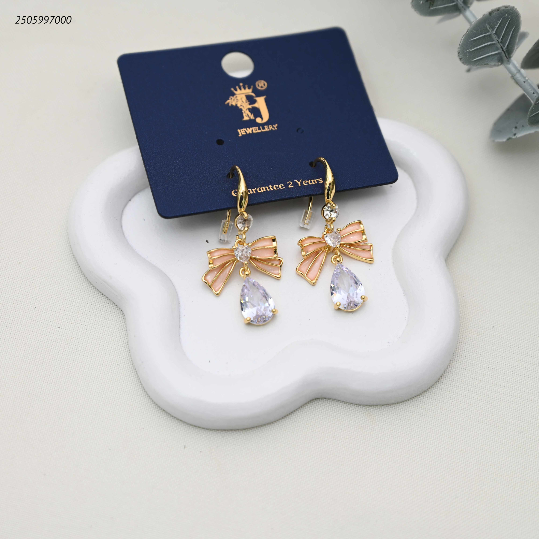 أقراط أذن متدلية بتصميم فيونكة وكريستال على شكل دمعة