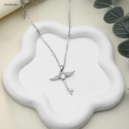 قلادة مفتاح القلب المجنح مرصعة بالزركون