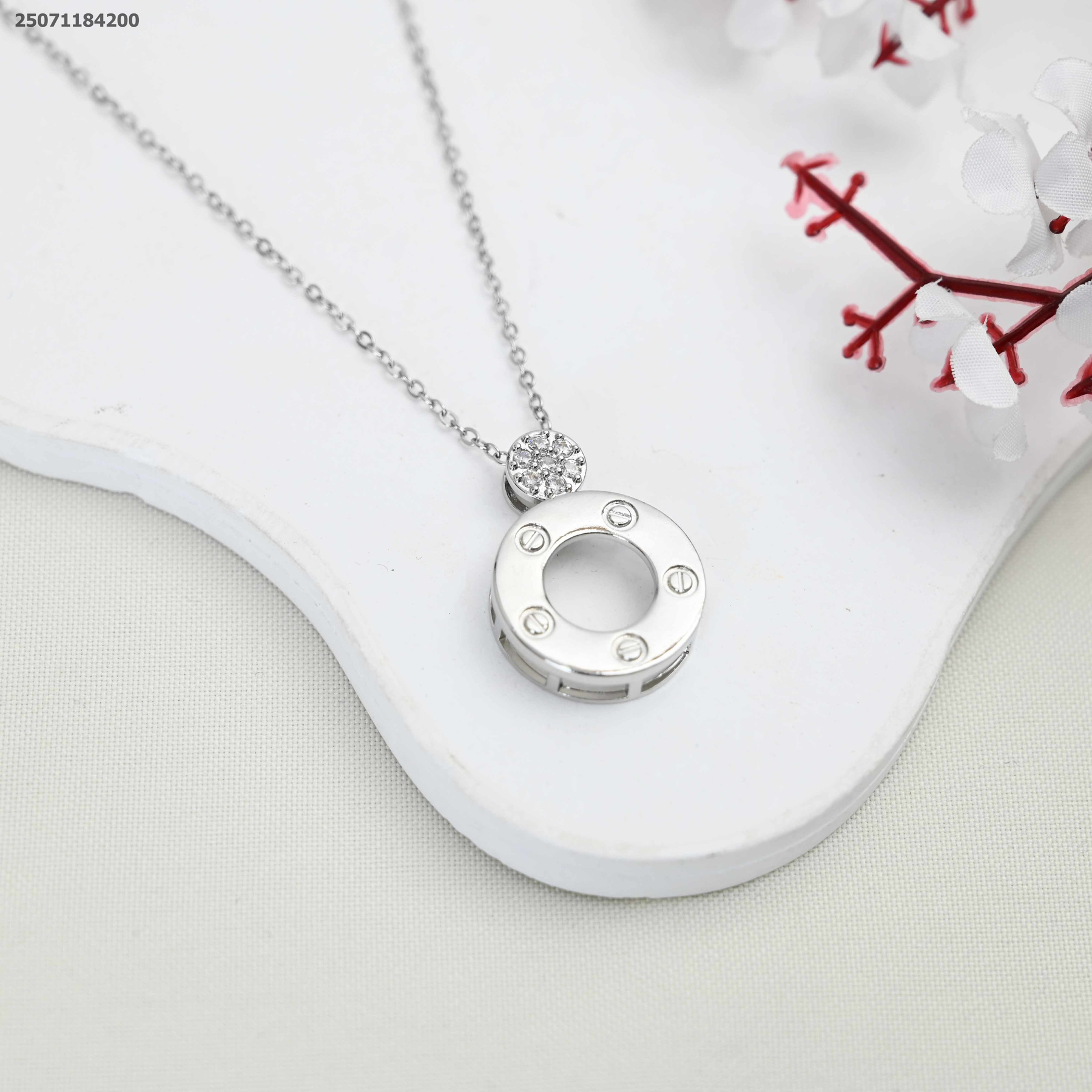 سنسال دائري مع زركون على اطارة و زركونه كبيره علة محيط الدائرة