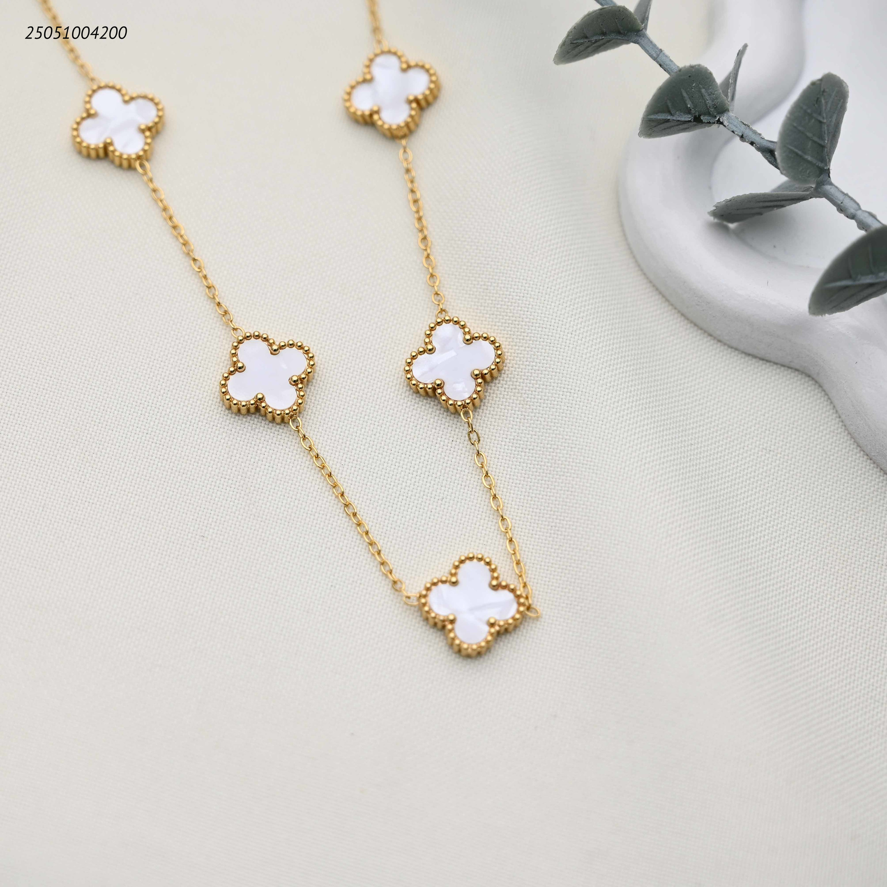 قلادة طويلة بتصميم زهور البرسيم مع صدف.