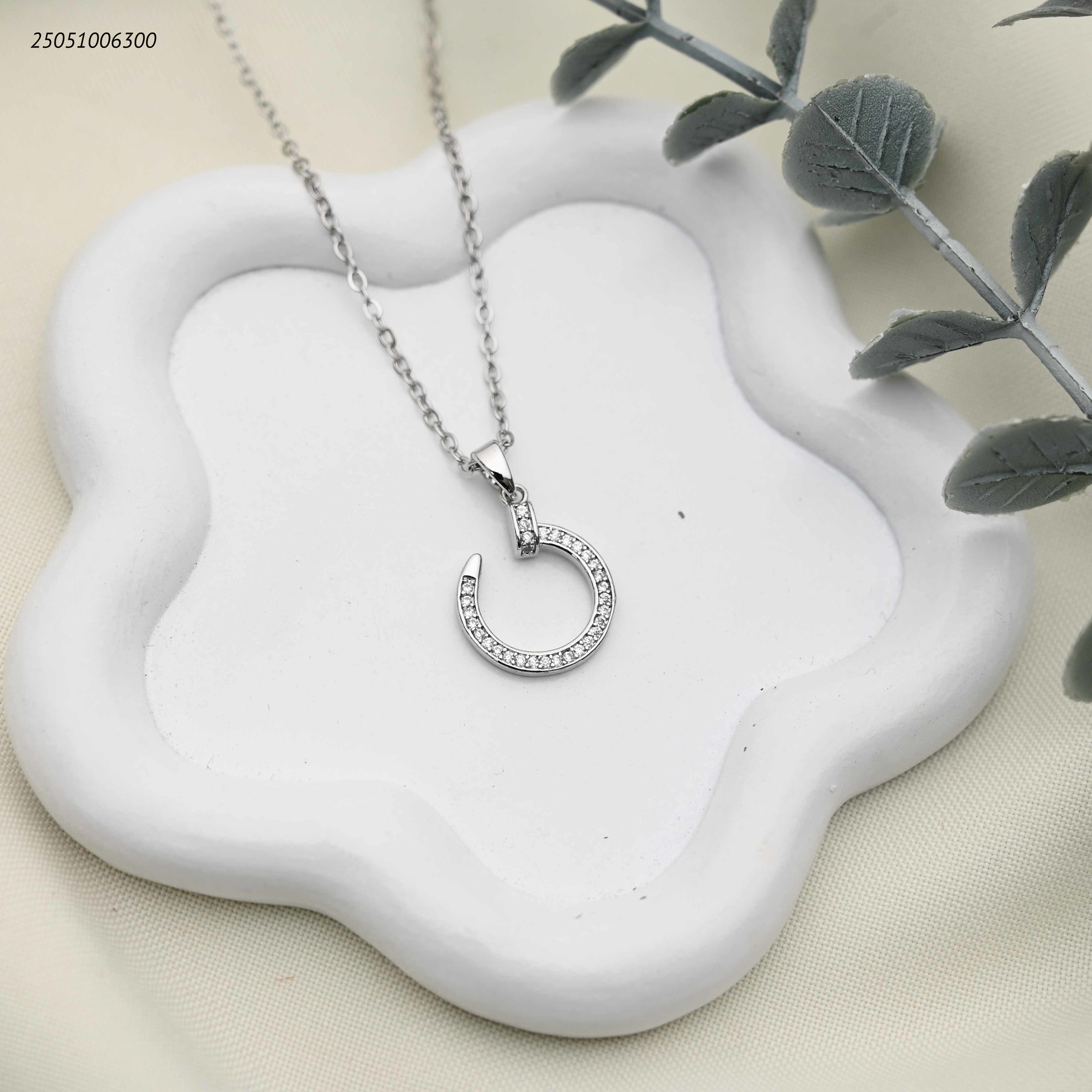 قلادة عصرية بتصميم مسمار دائري مرصع بالزركون.