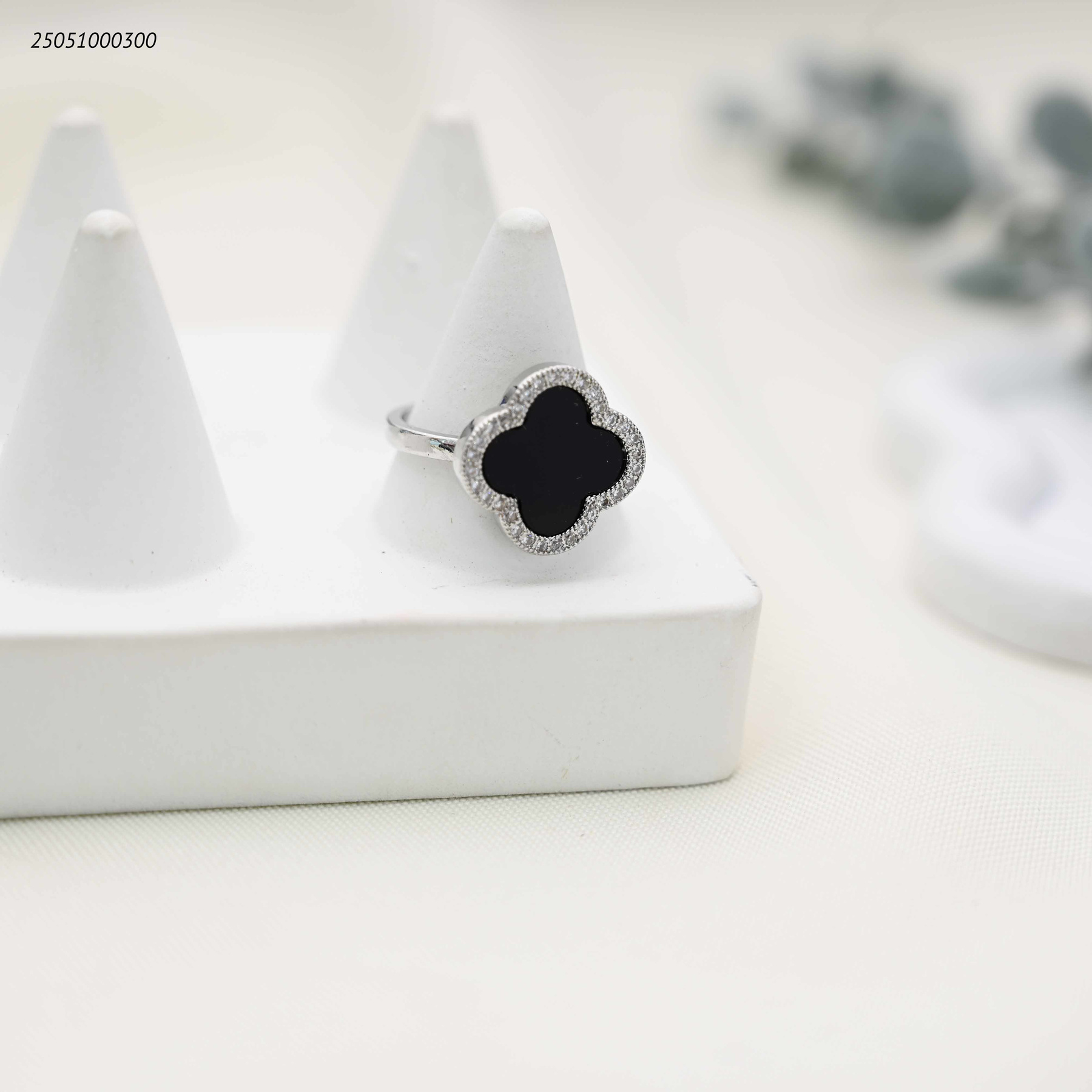 خاتم زهرة البرسيم بصدف ومزين بالزركون اللامع.
