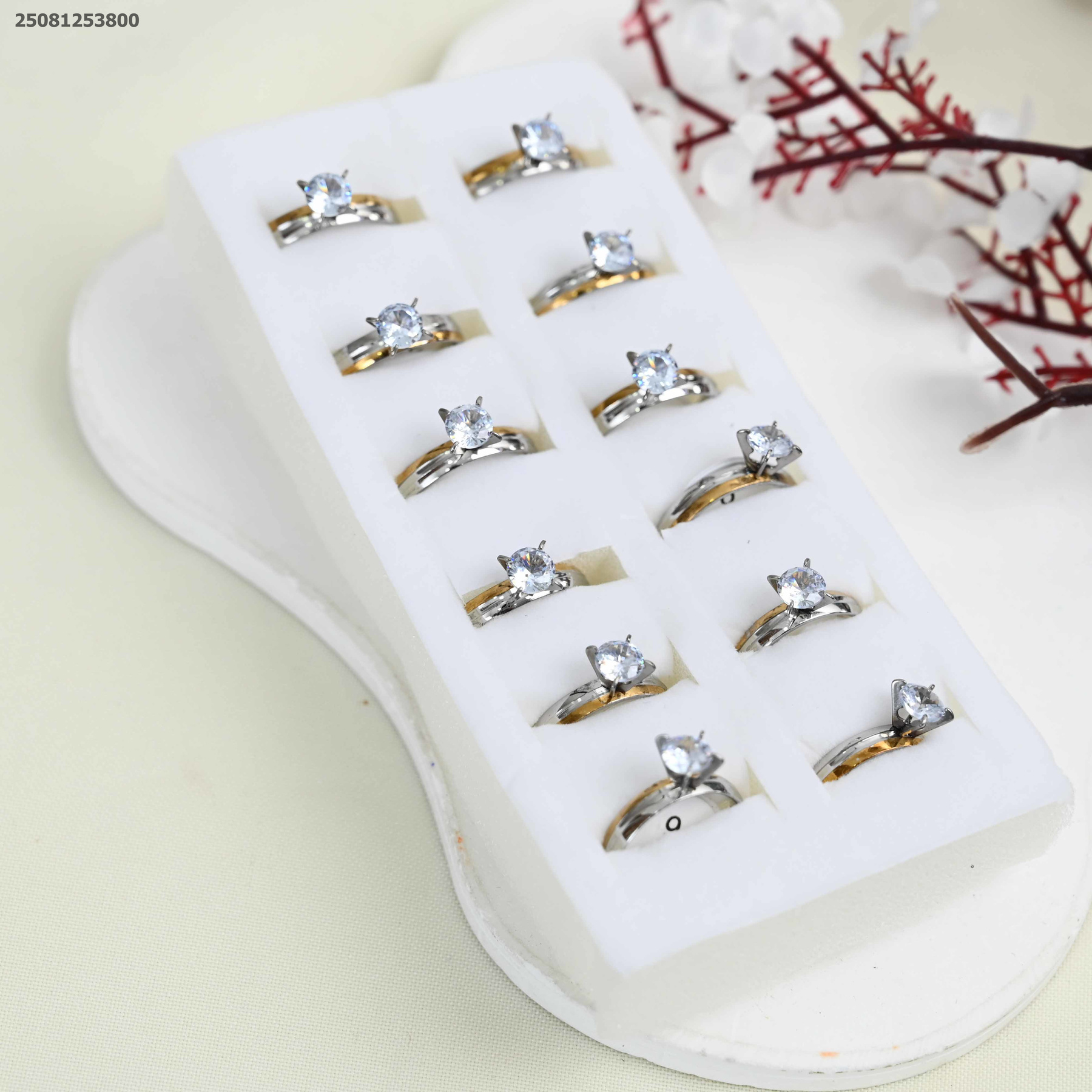 دبلة قطعتين مع حجر زركون دائري - توينز