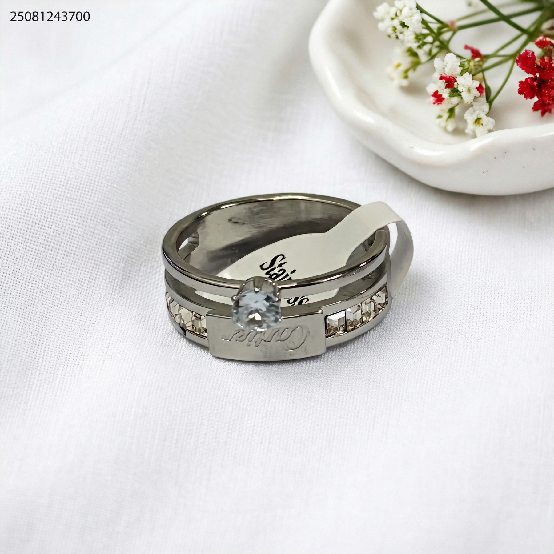 دبلة ماركة طبقتين , طبقة مع زركون وطبقة مع حجر دائري