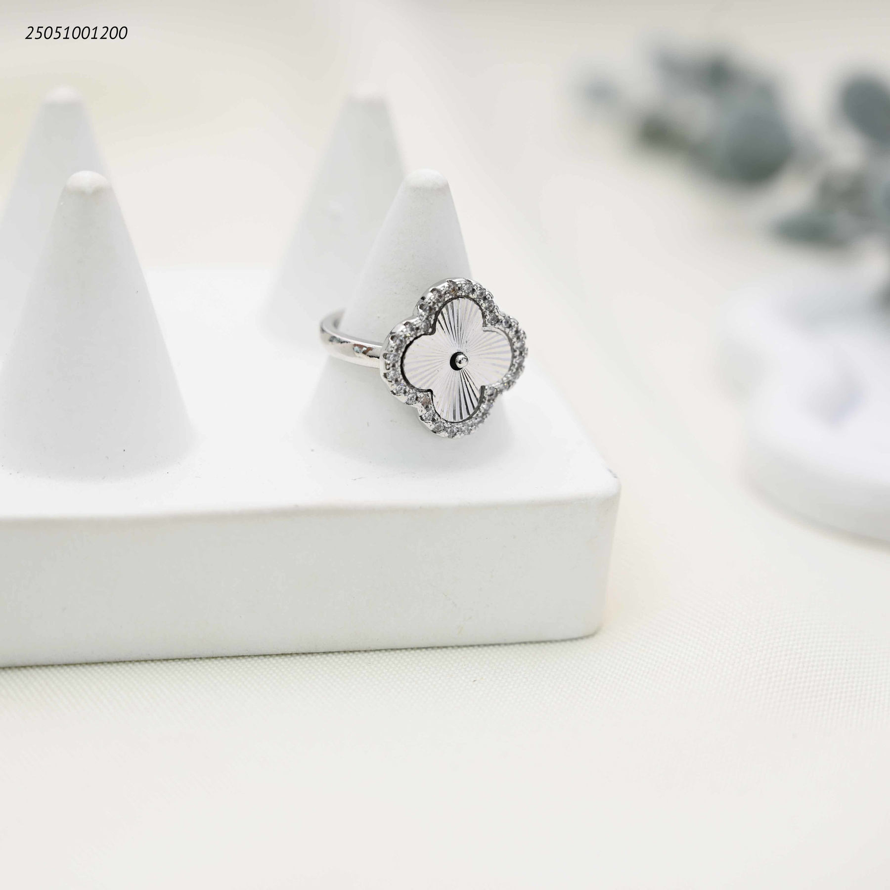 خاتم زهرة البرسيم المرصعة بالزركون بتصميم أنيق.
