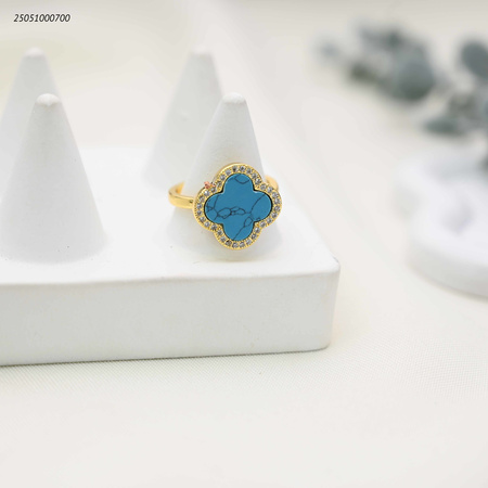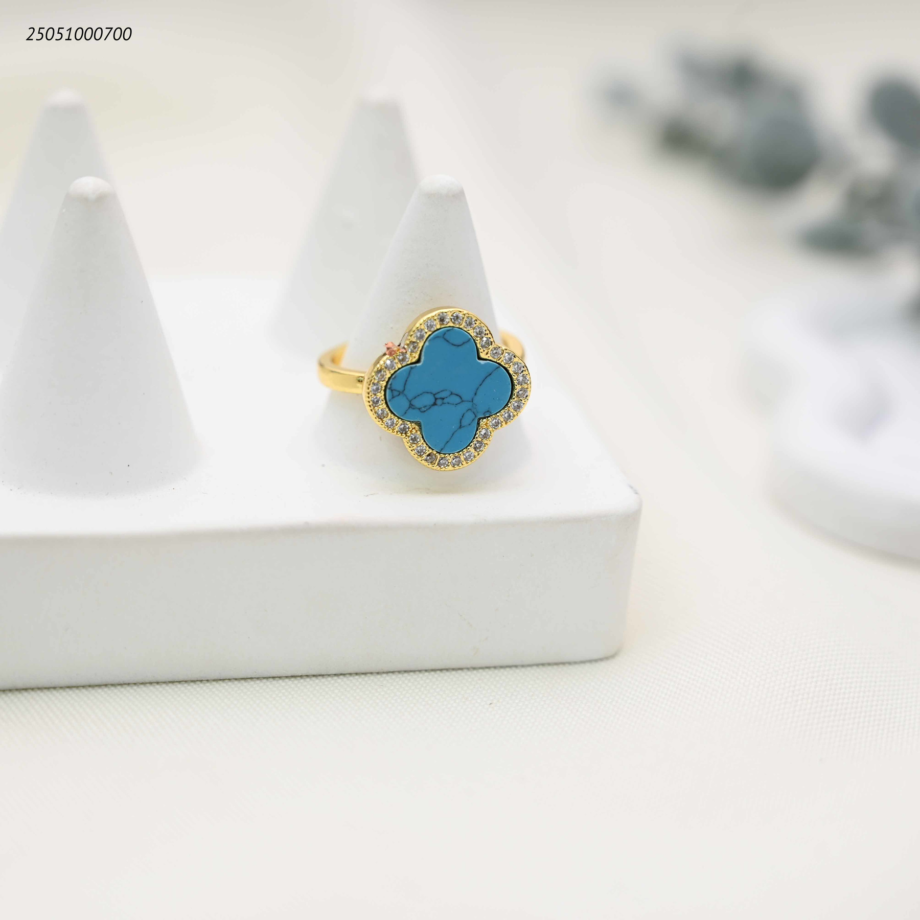 خاتم زهرة البرسيم بصدف ومزين بالزركون اللامع.