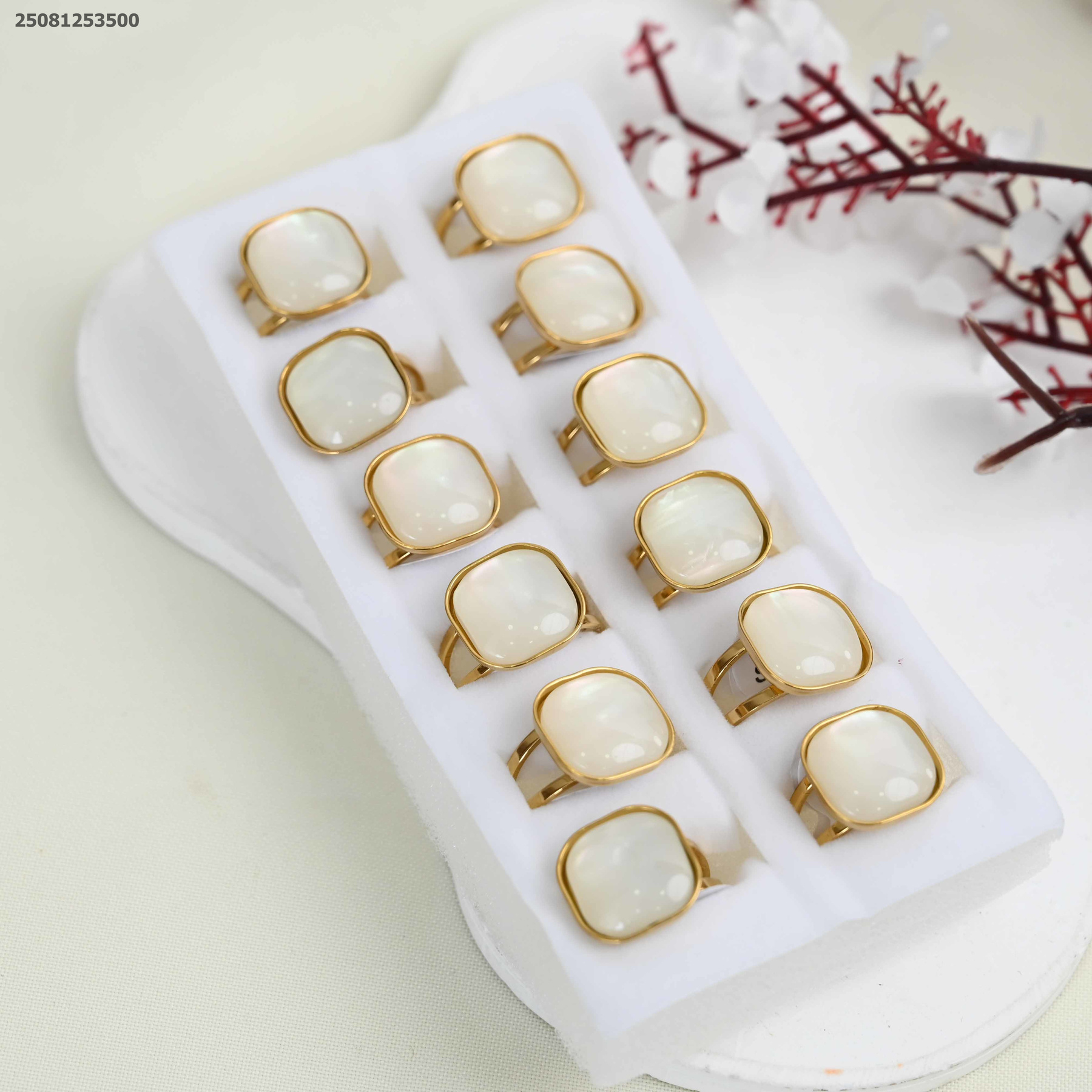 خاتم مربغ الشكل مع حجر أبيض