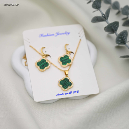 طقم أنيق بتصميم زهرة البرسيم وصدف وزركون.
