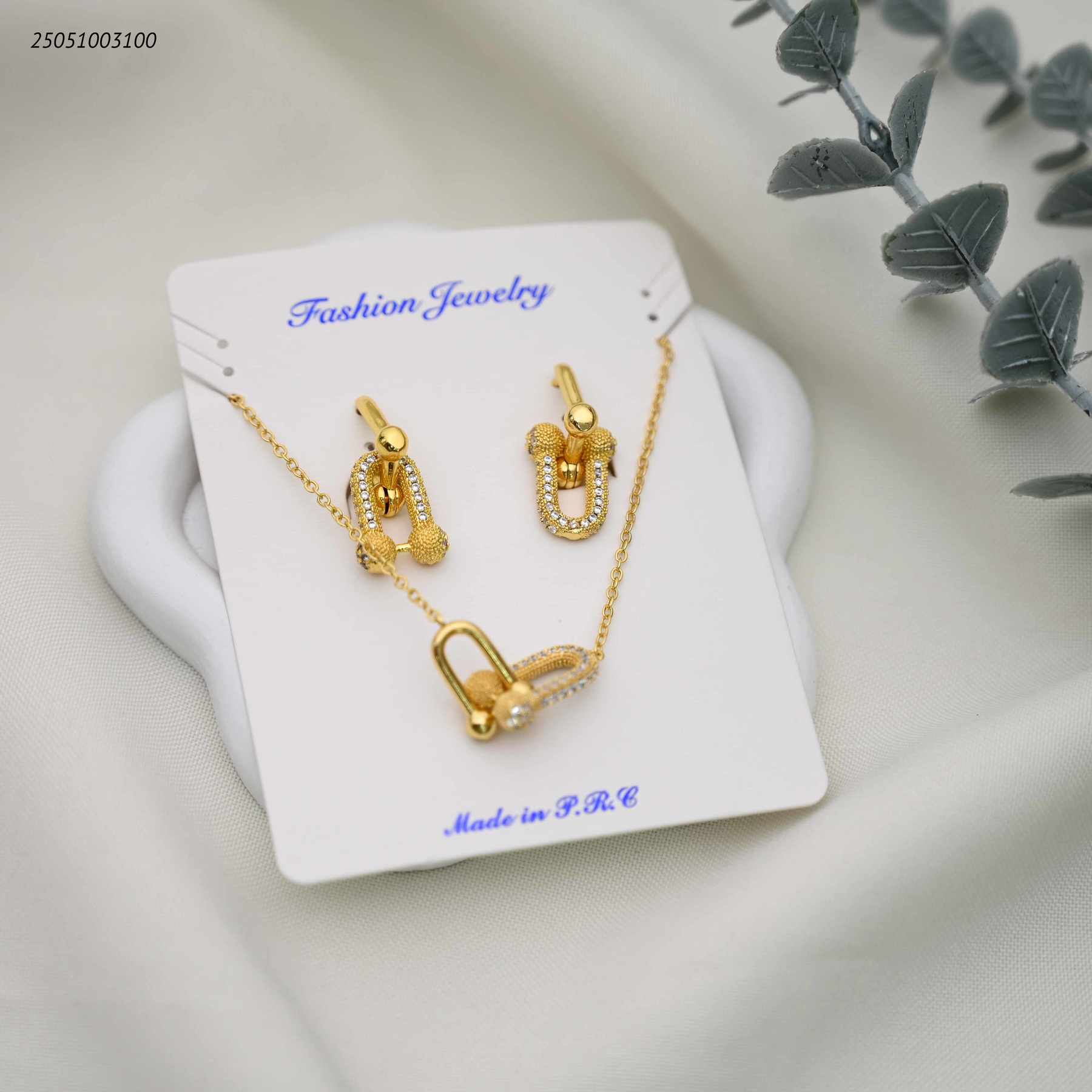طقم مجوهرات بتصميم حدوة الحصان ومرصع بالزركون.
