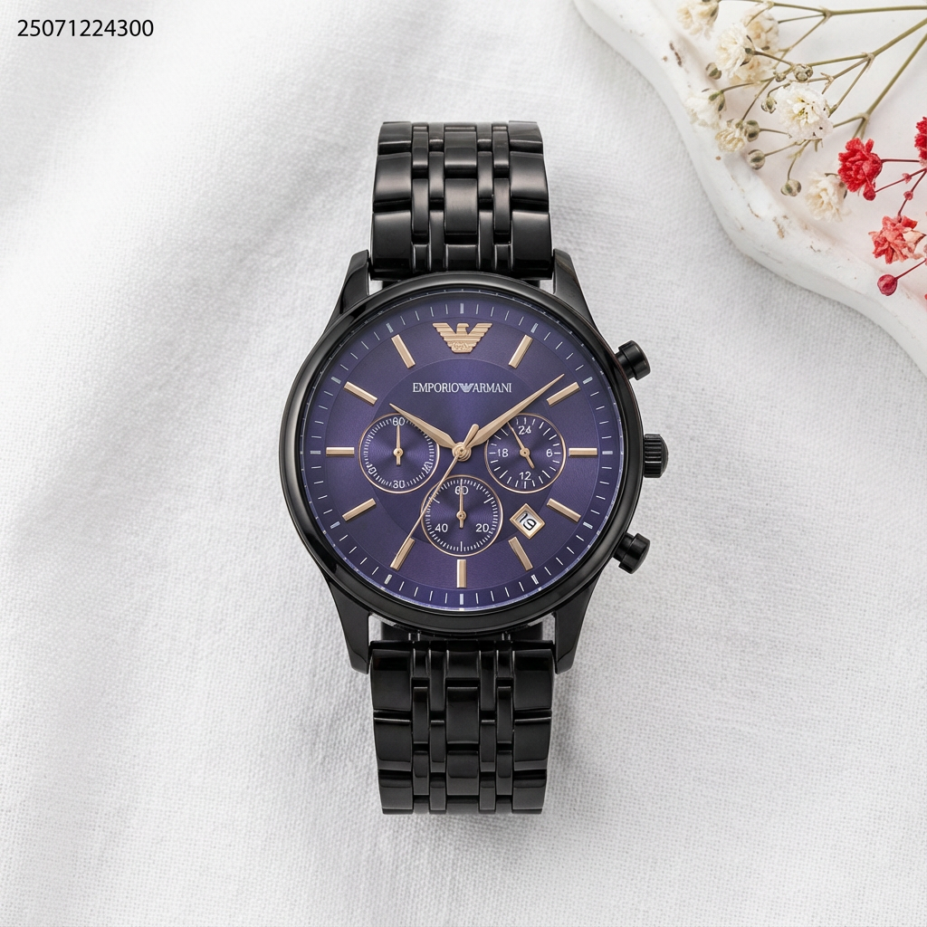 ساعه رجالي شكل دائرة مع حزام معدني