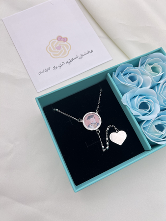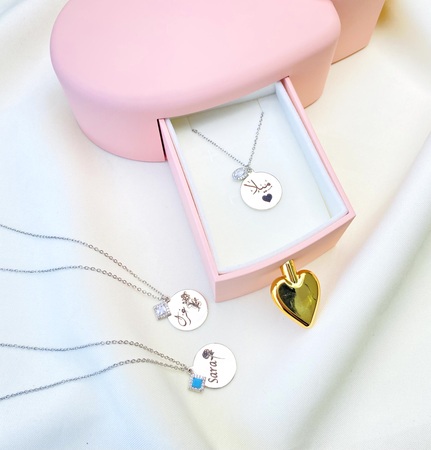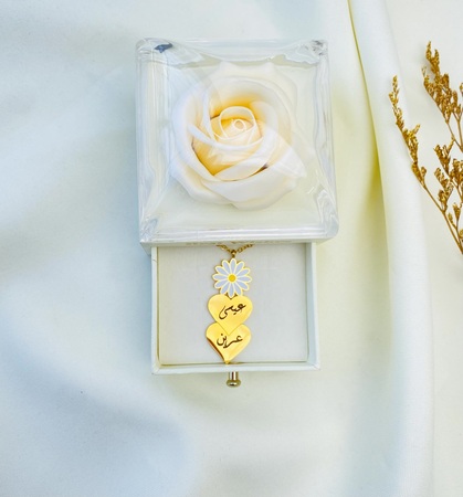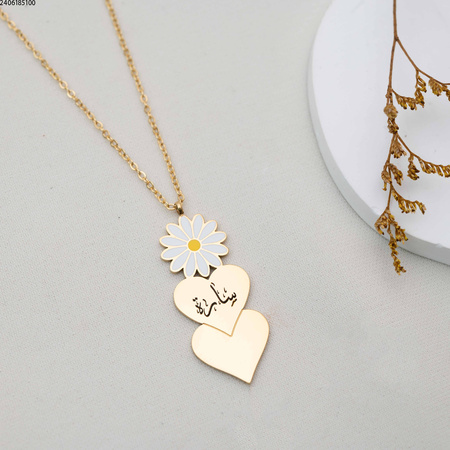 A daisy necklace with two hearts for engraving, exquisitely adorned with an engraving befitting the gift recipient, adding a personal and elegant touch that reflects the depth of your love for them.