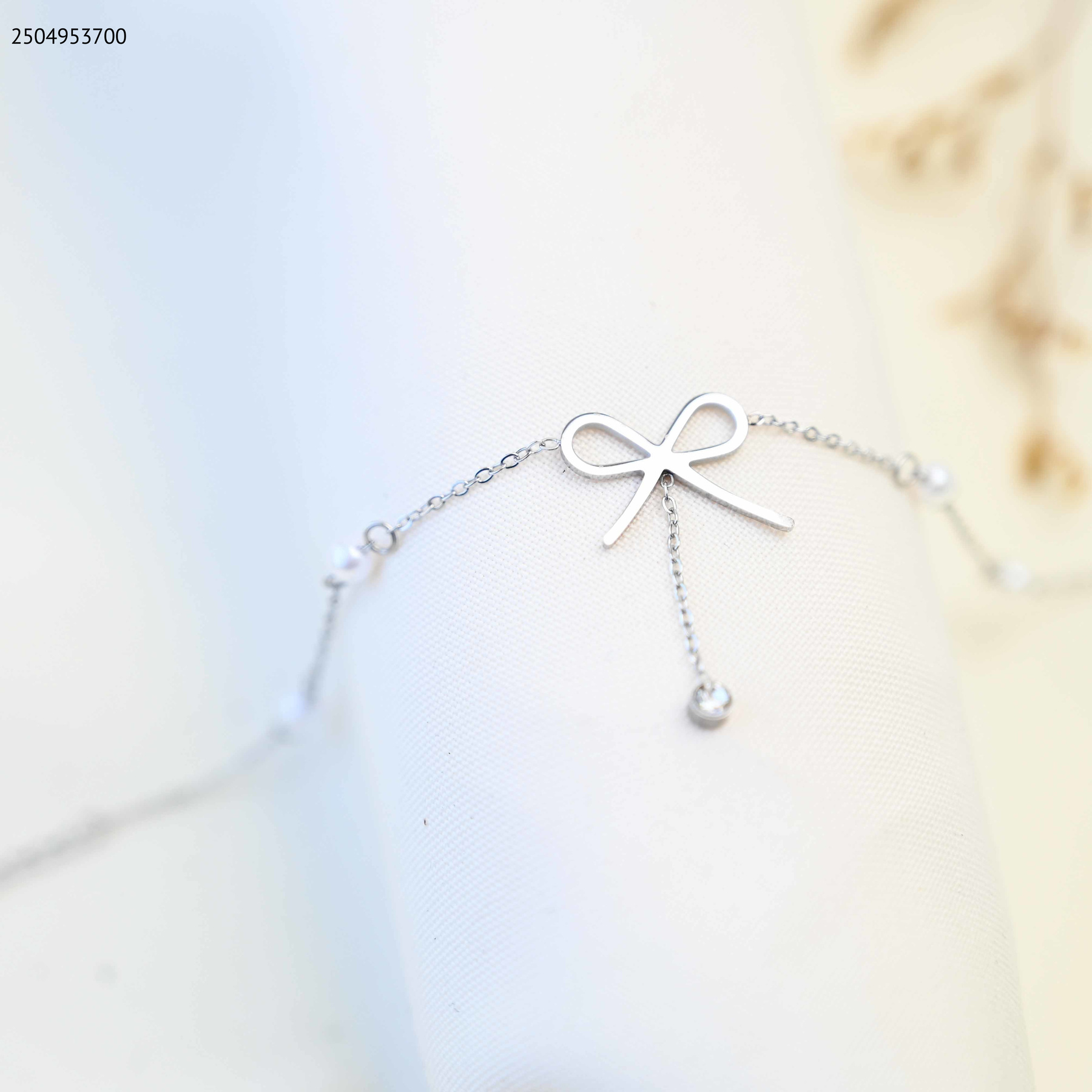 اسوارة صغيره على شكل فيونكة،مع سلاسل لولو.
