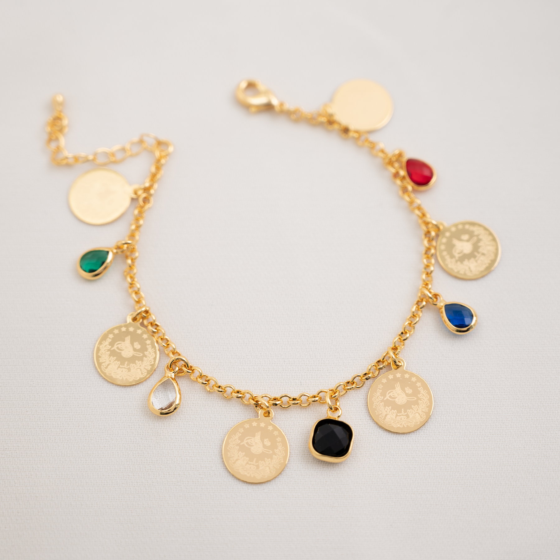 اسوارة مع تعليقات ليرات مع زركون ملون
