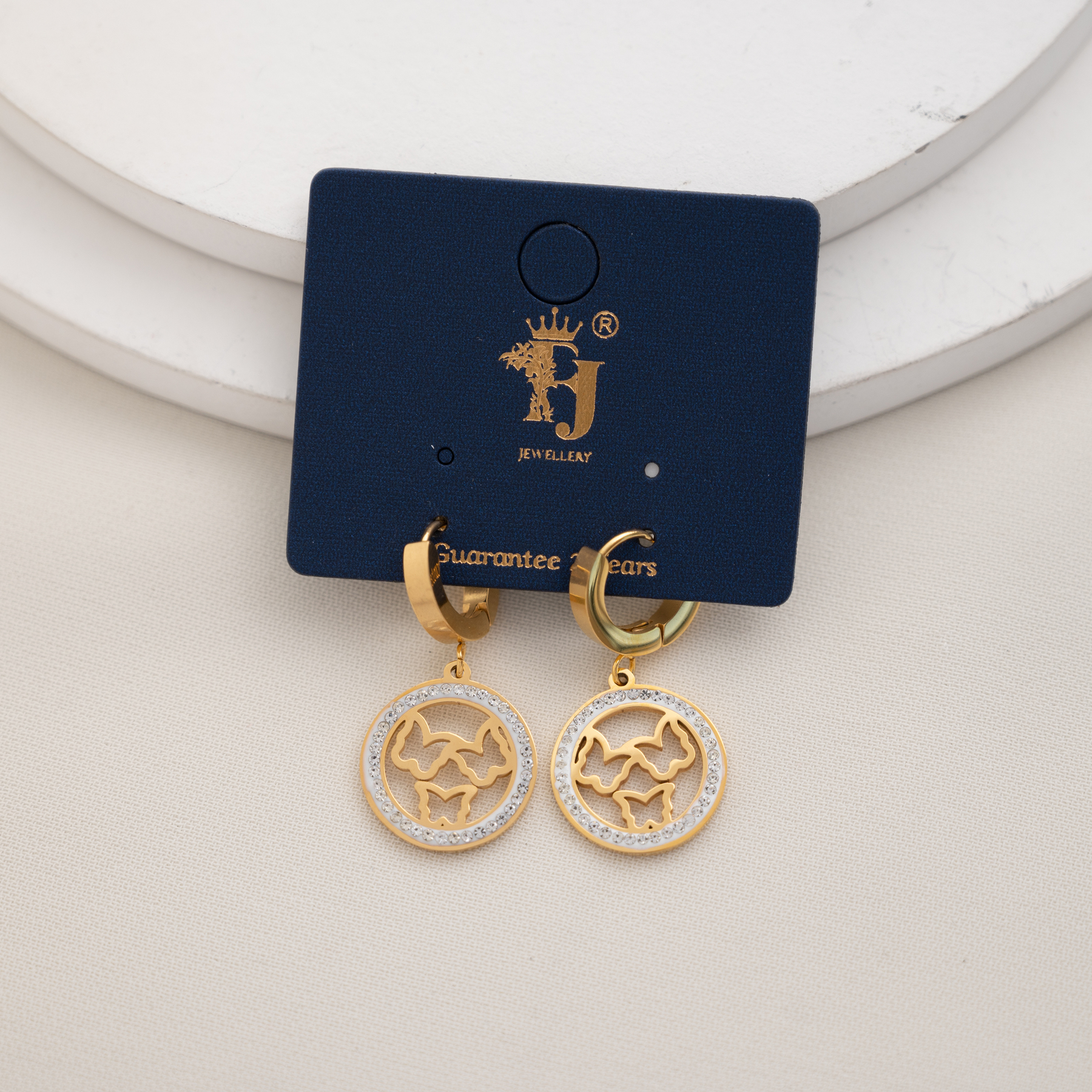 حلق ستيل دائرة اطار زركون فراشات