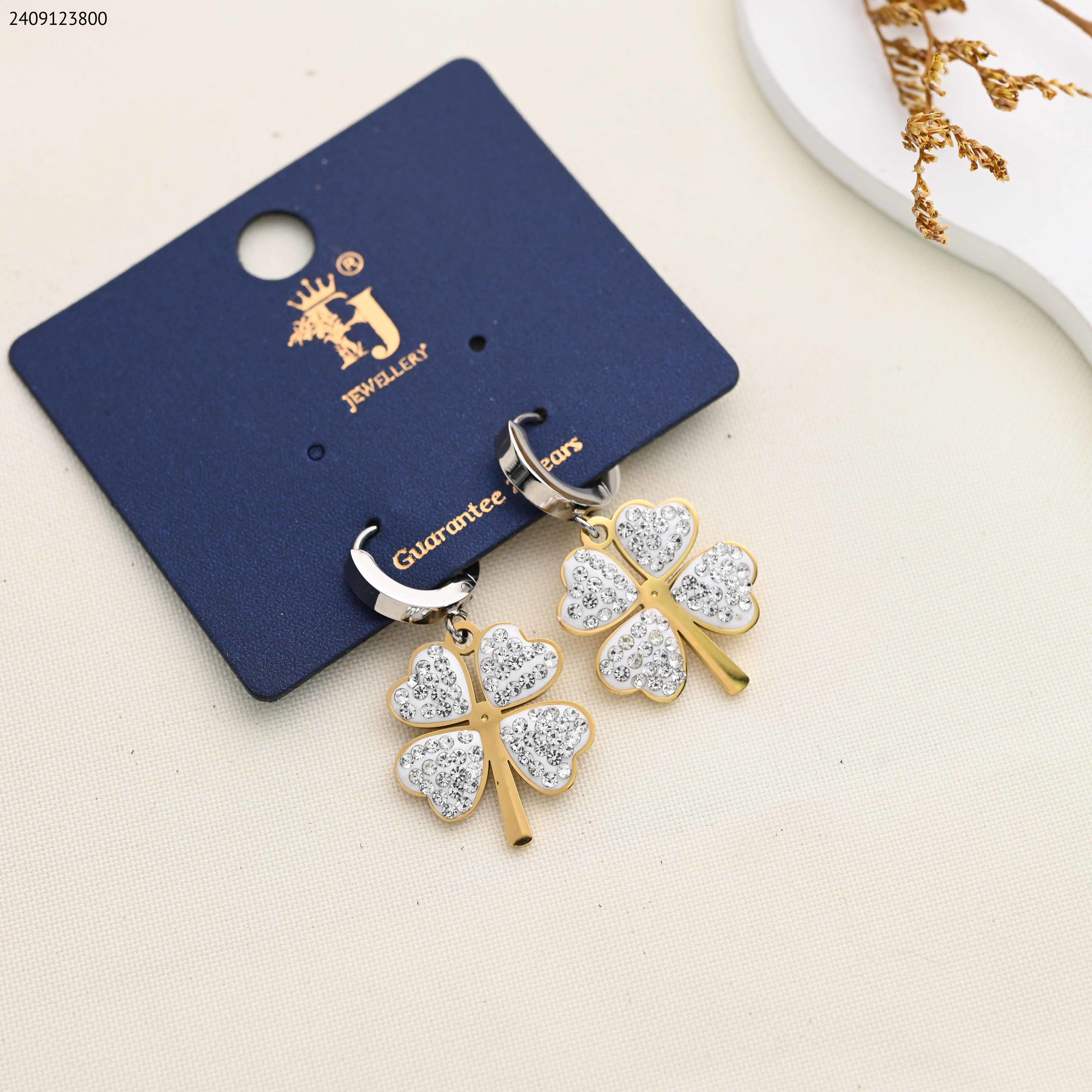 حلق وردة البرسيم مع زركون