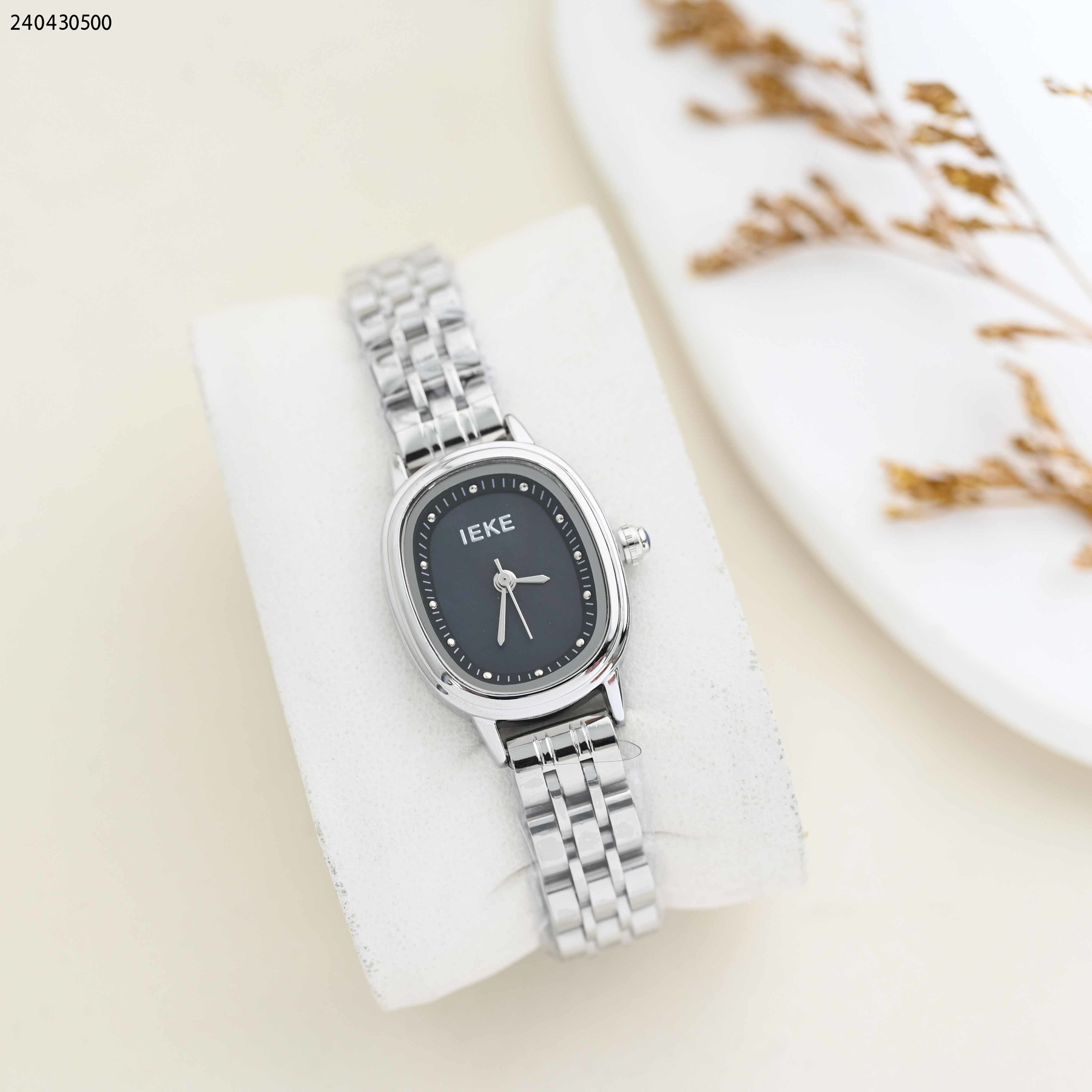 ساعة نسائية بيضاوية مع حزام معدني