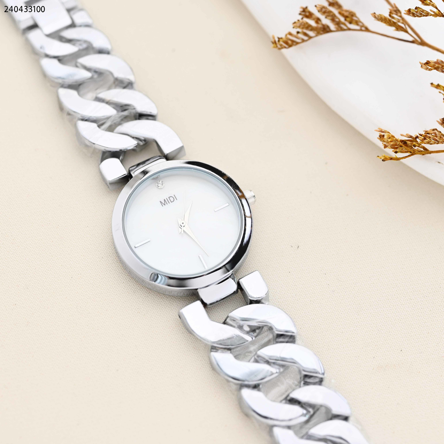ساعة نسائية دائرية مع حزام مجدل