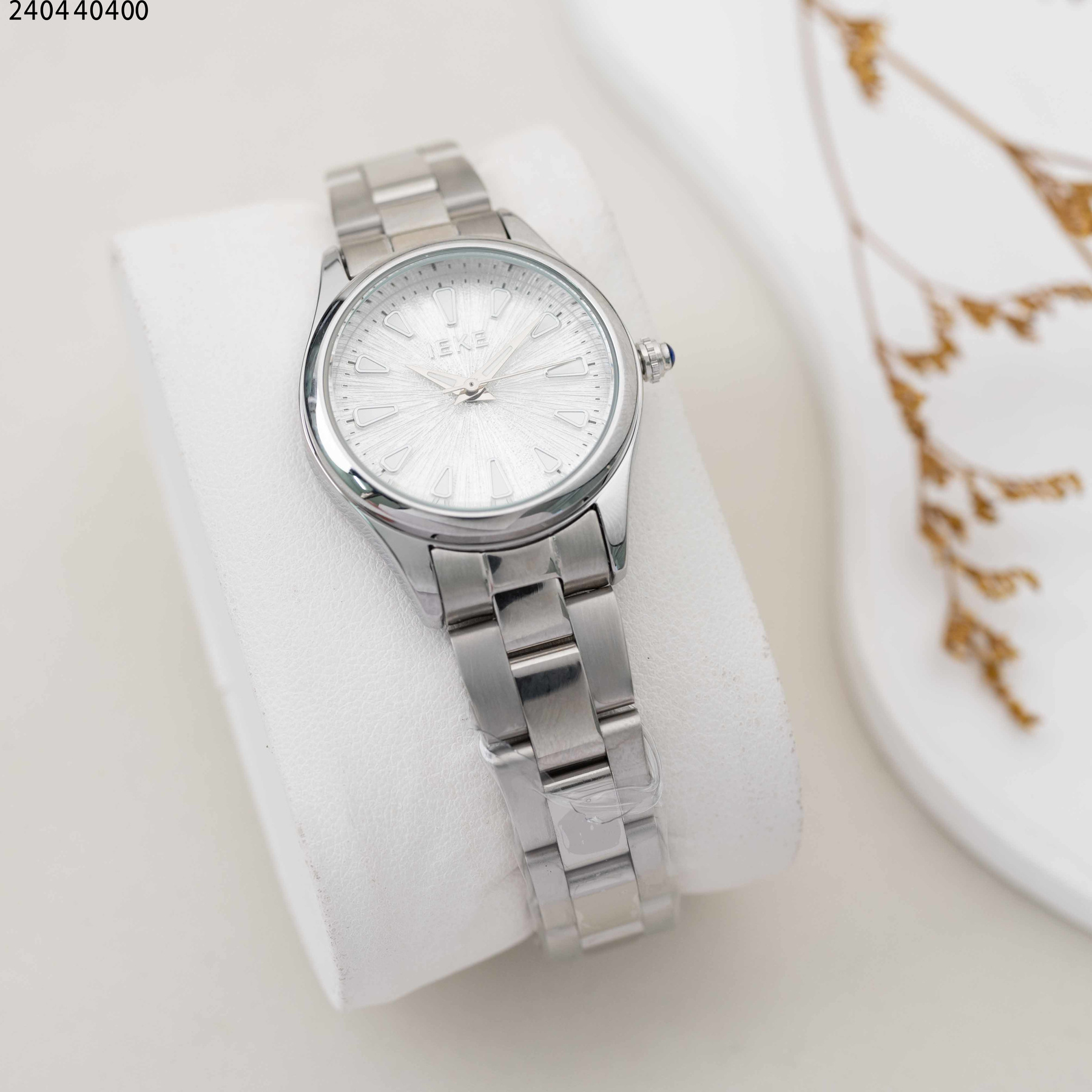 ساعة نسائية دائرية مع حزام معدني