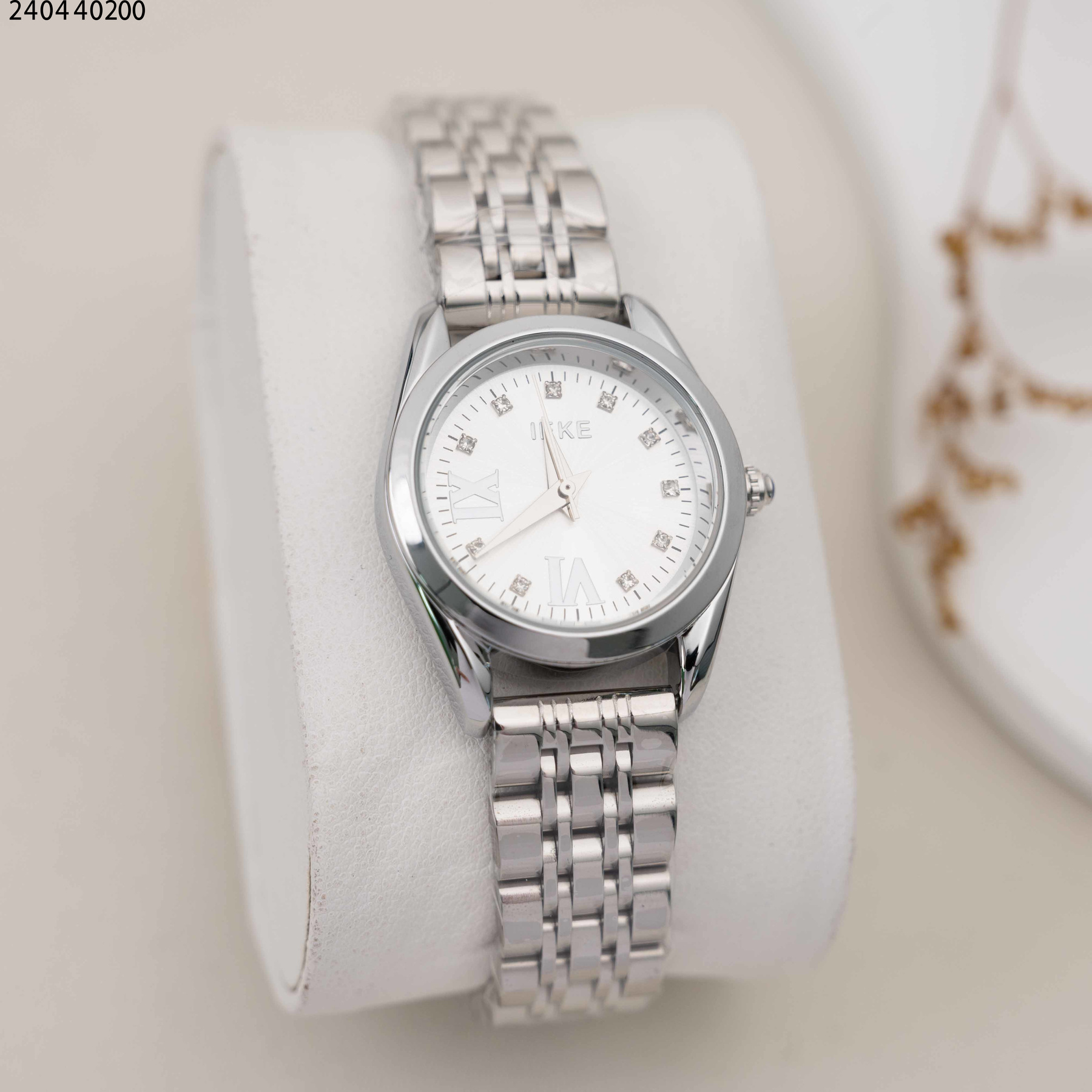 ساعة نسائية دائرية مع خلفية فراشة و حزام معدني