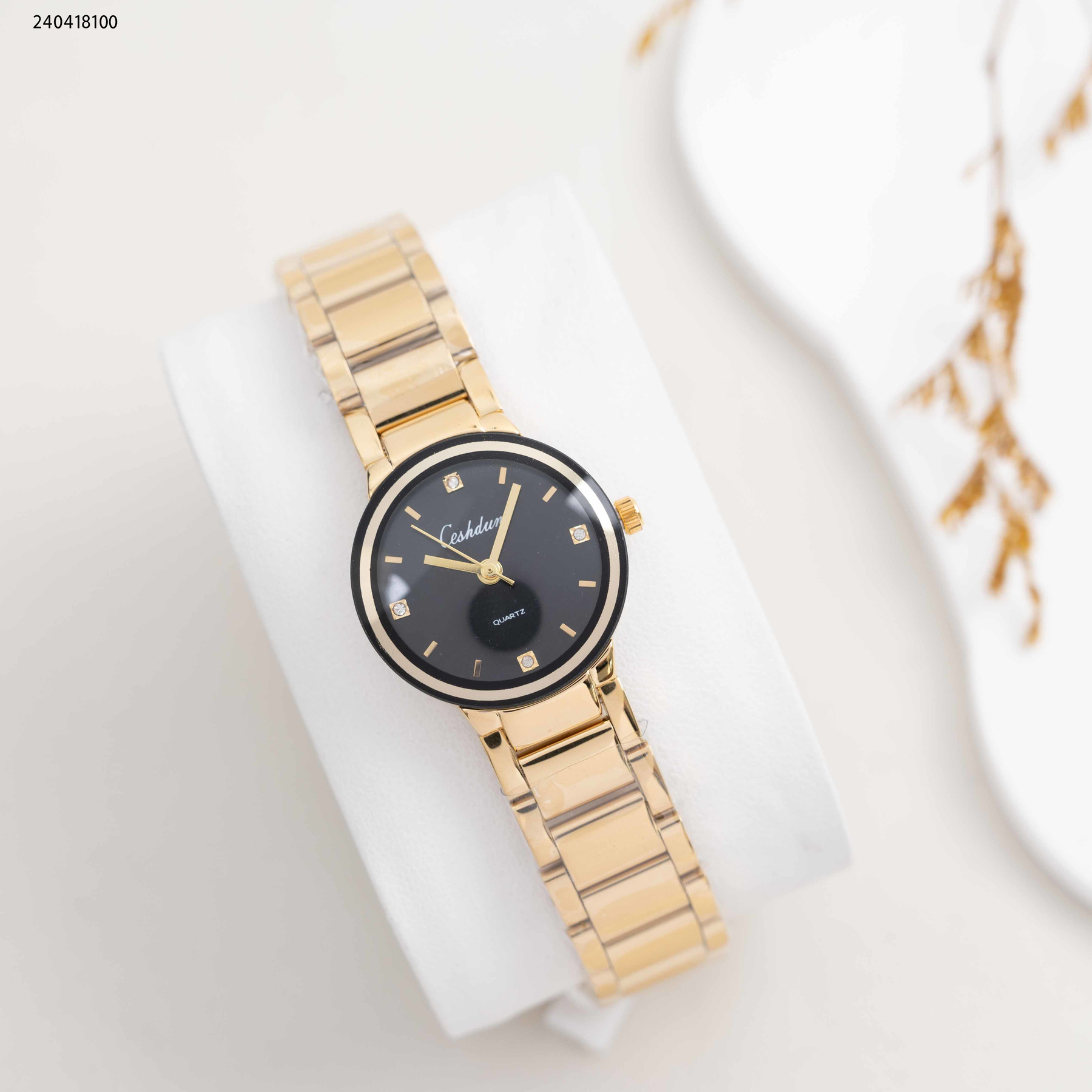 ساعة نسائية دائرية مع زركون داخلي وحزام معدني