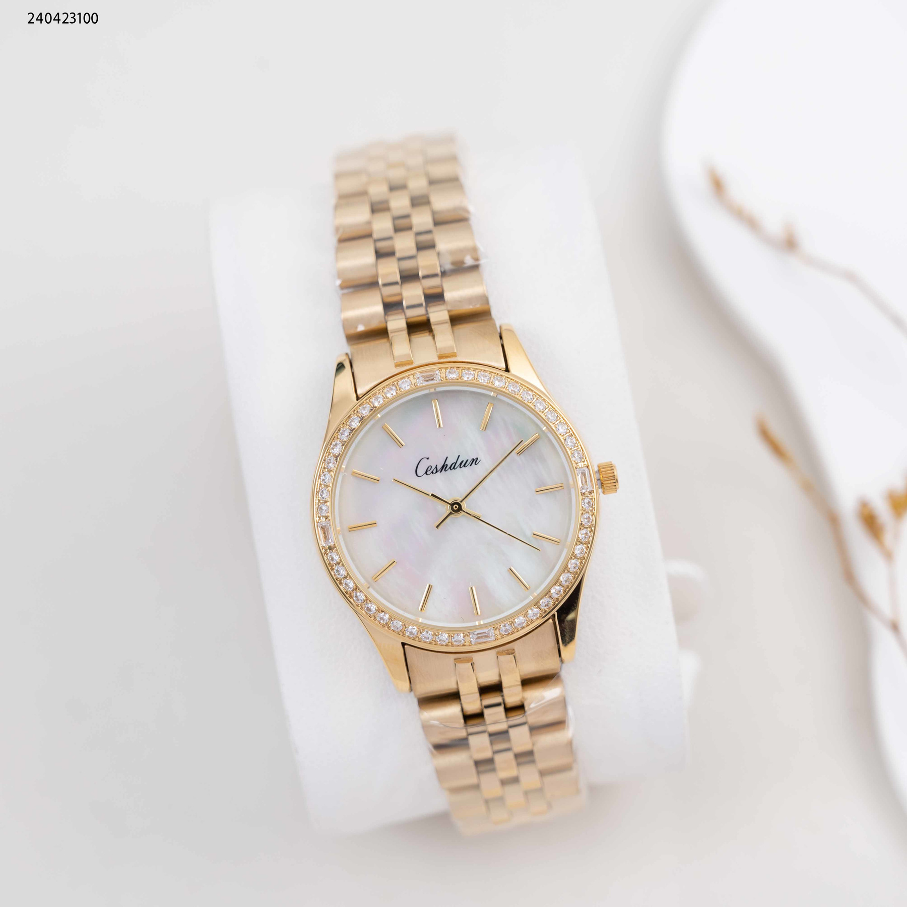 ساعة نسائية دائرية مع زركون وحزام معدني