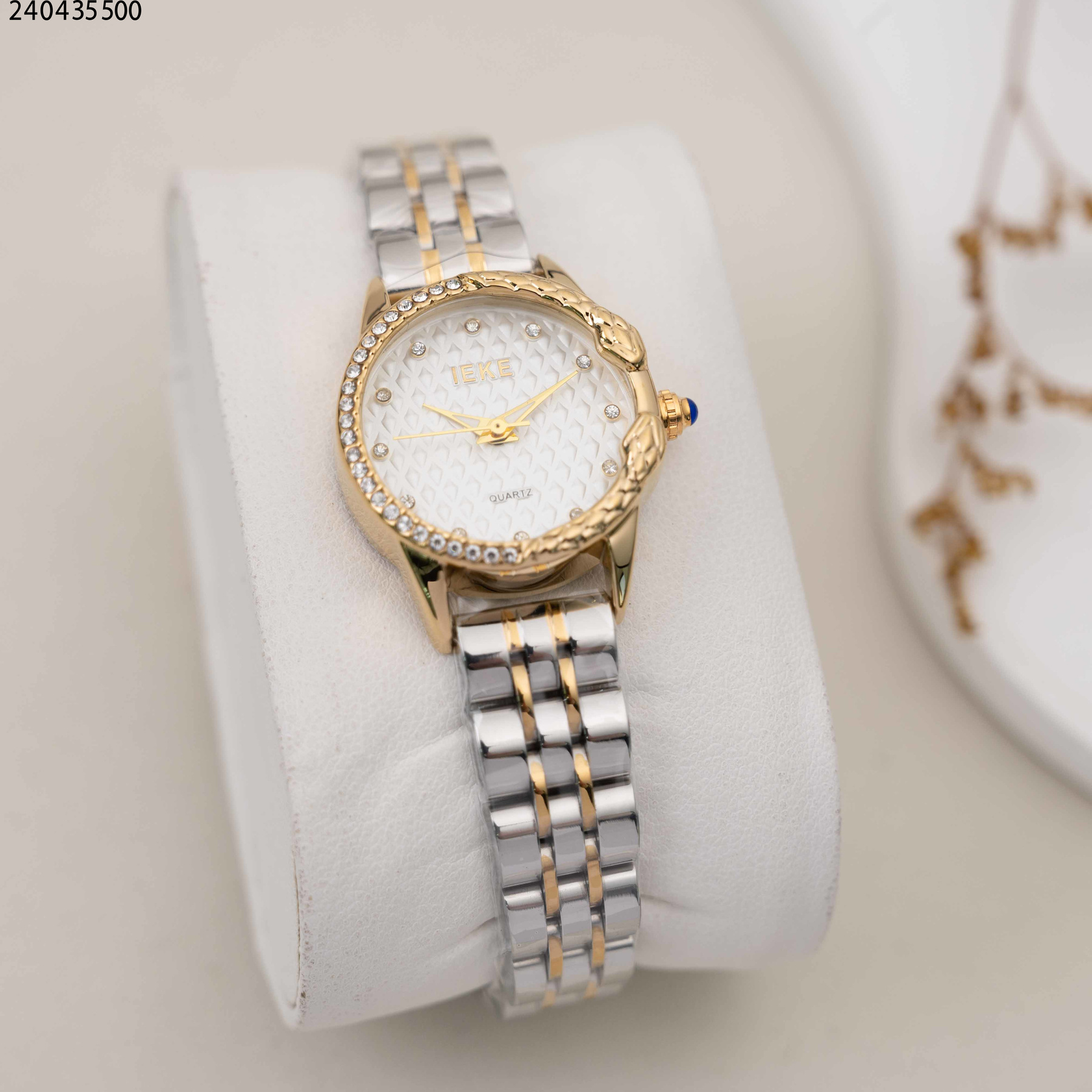 ساعة نسائية دائرية مع زركون وحزام معدني