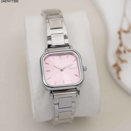 ساعة نسائية دائرية مع زركون وحزام معدني