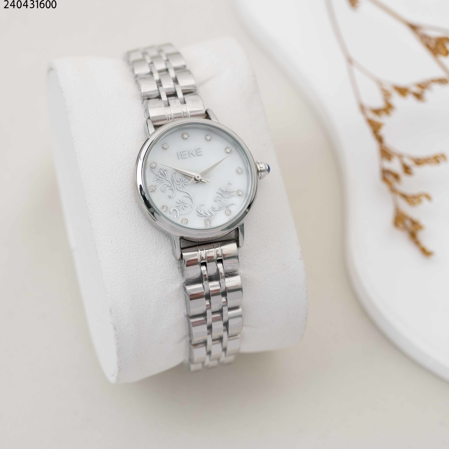 ساعة نسائية دائرية مع زركون وحزام معدني