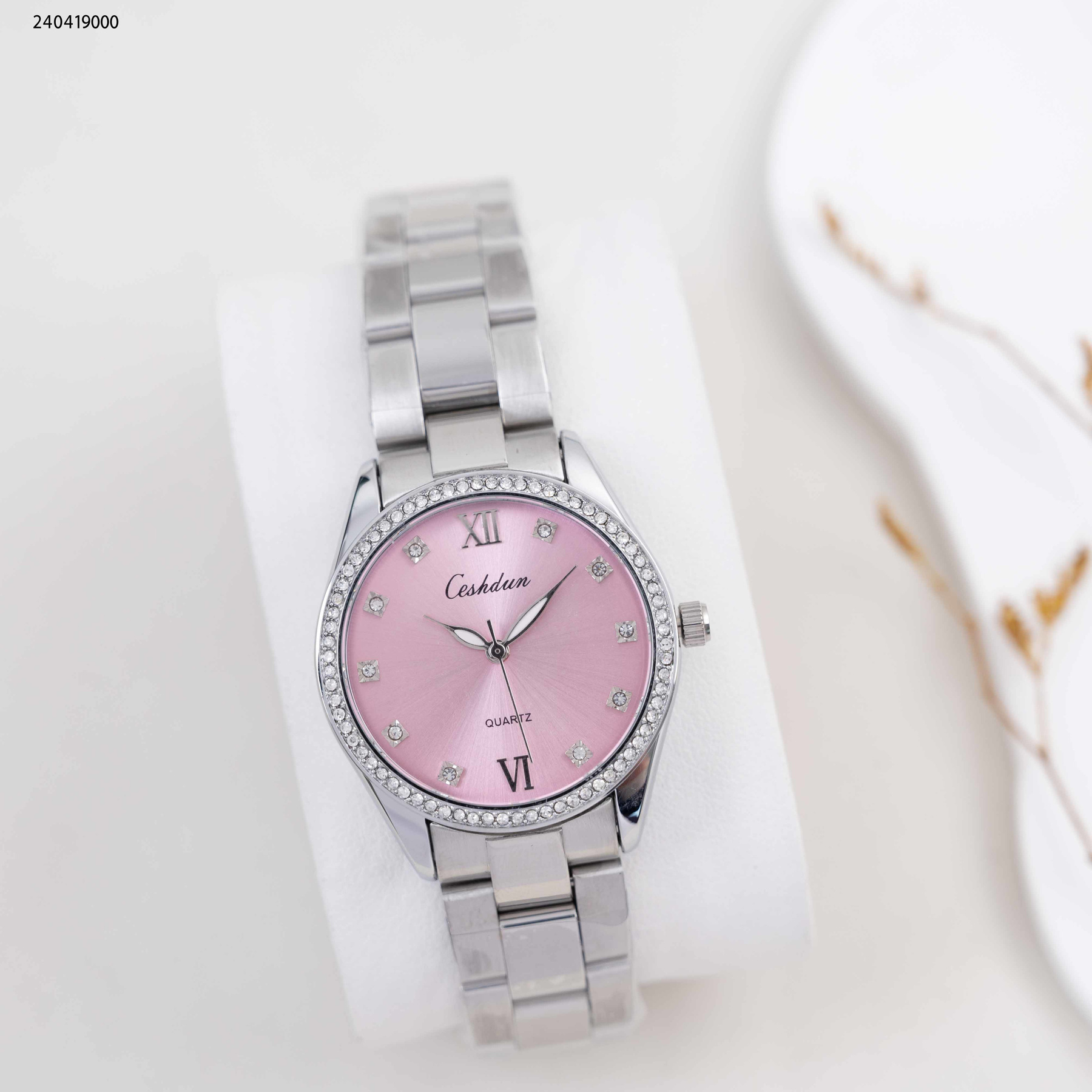 ساعة نسائية دائرية مع زركون وحزام معدني