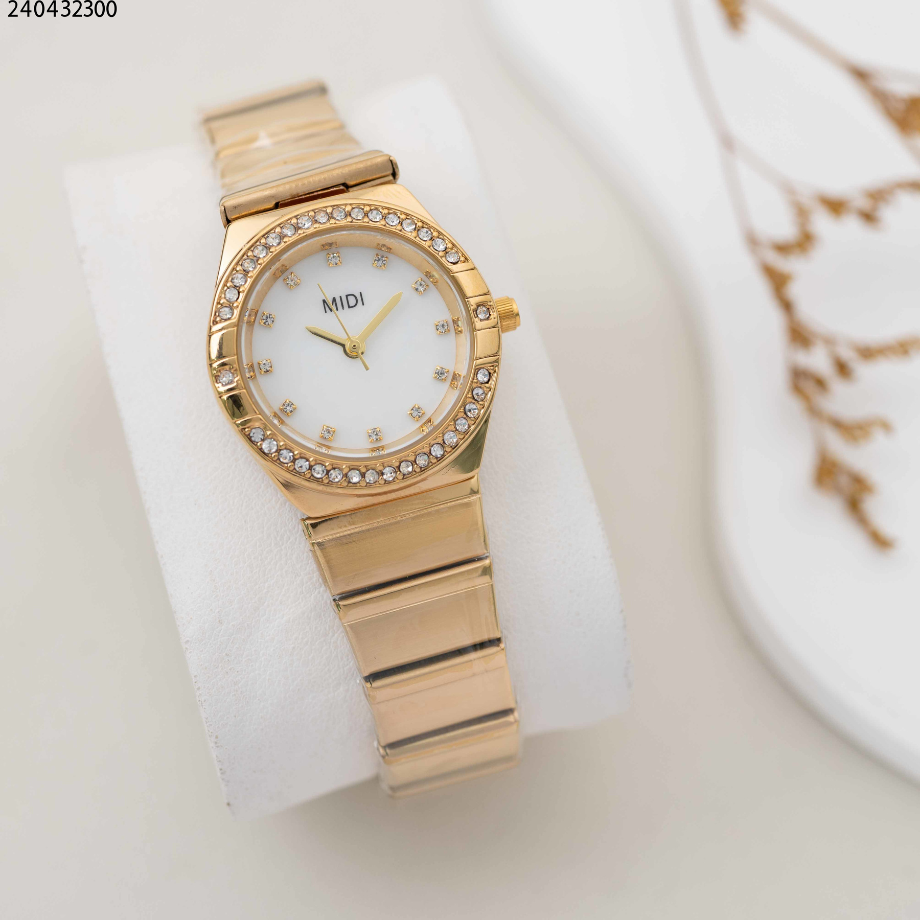 ساعة نسائية دائرية مع زركون و حزام معدني