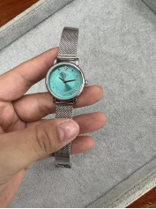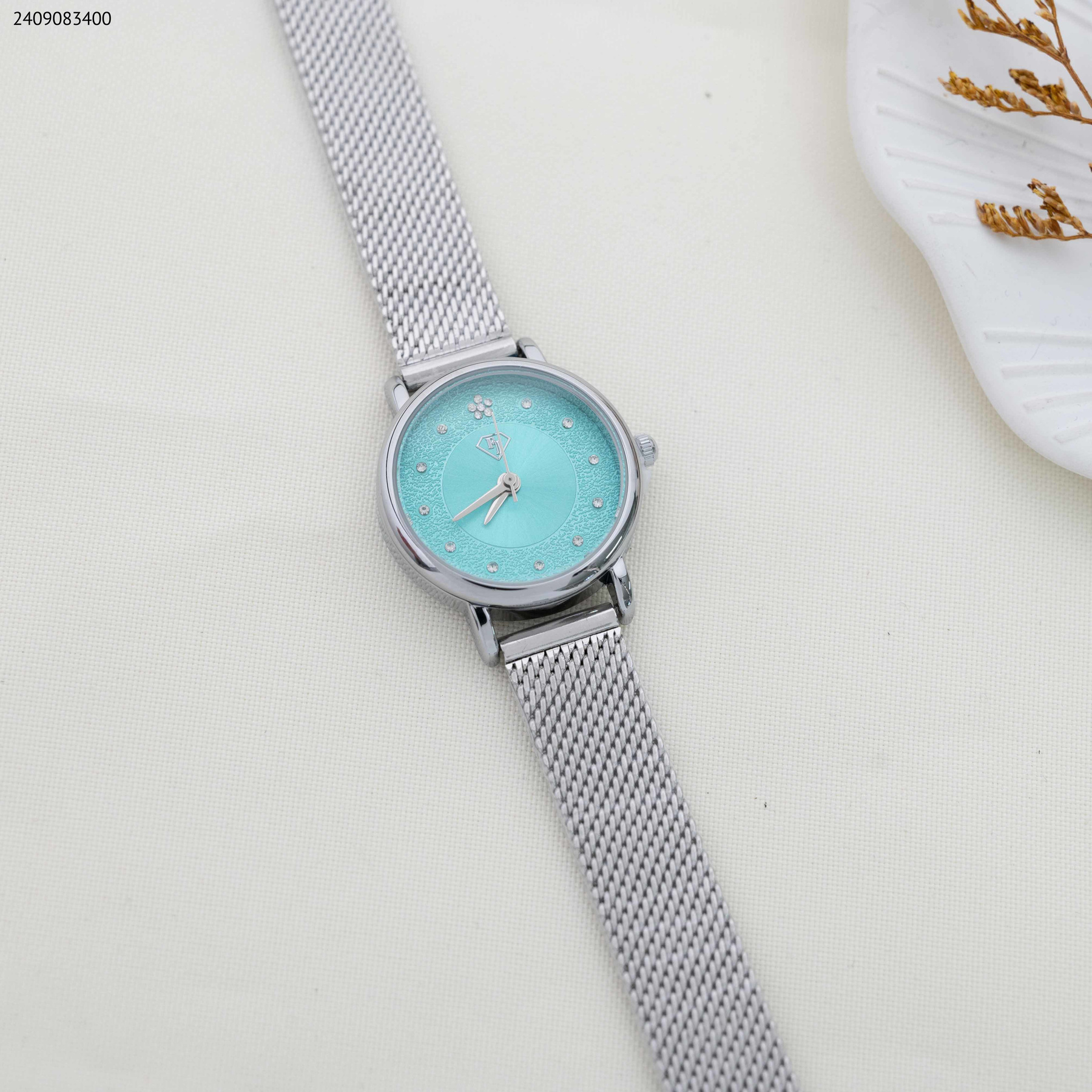 ساعة نسائية بتصميم دائري أنيق مع بحزام معدني مكفول اللون، مما يضمن لك تألقًا يدوم طويلاً دون تغيير اللون