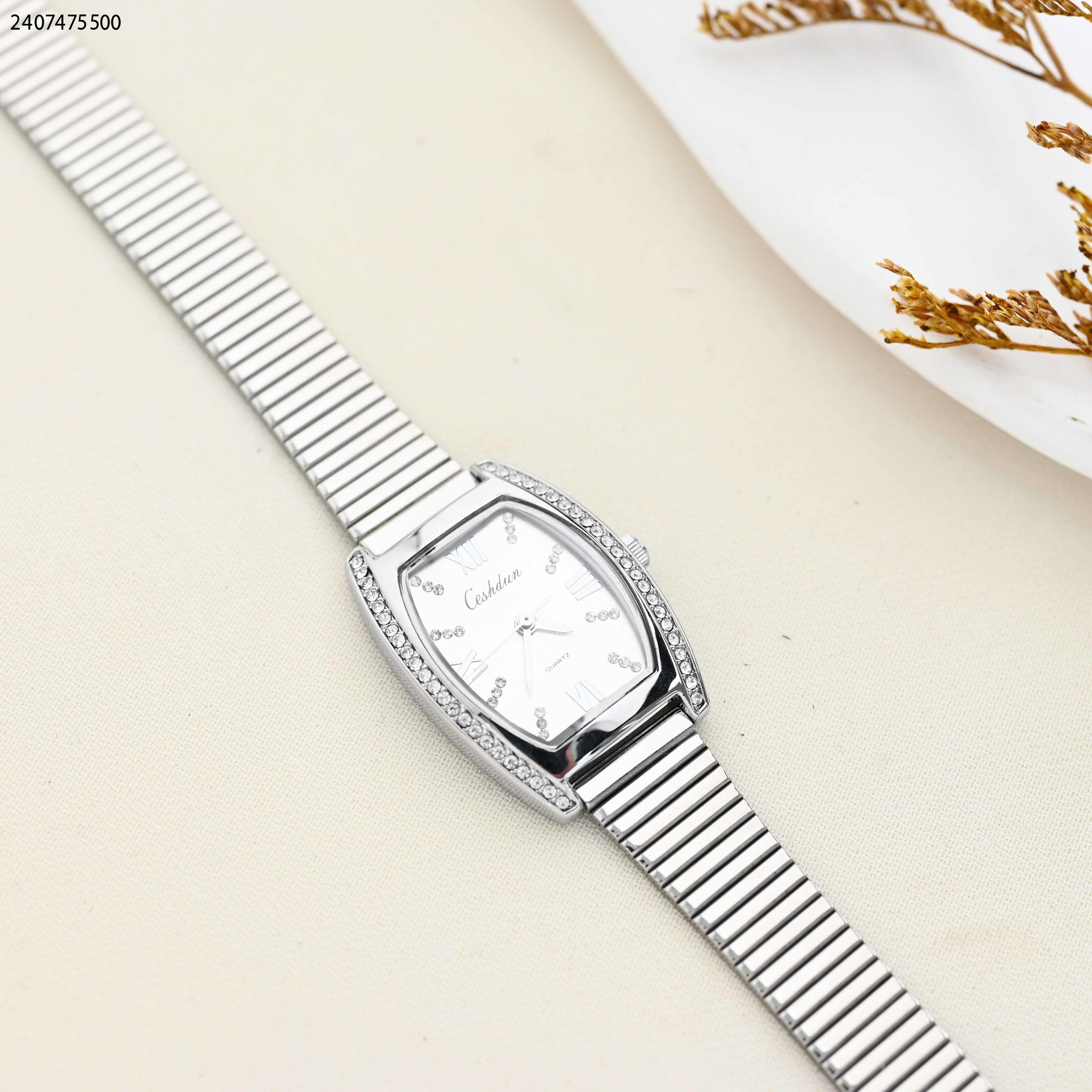 ساعة نسائية مربعة مع زركون