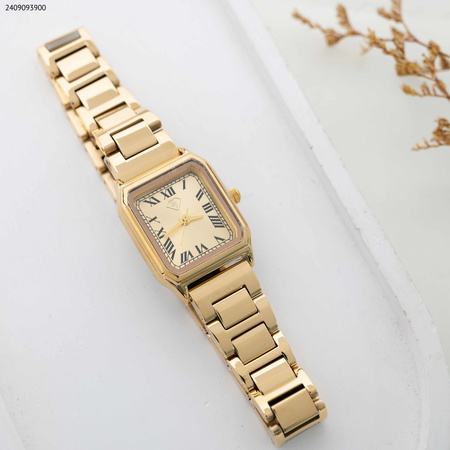 ساعة نسائية بتصميم مربع مع أرقام لاتينية كلاسيكية ، مزودة بحزام معدني متين ، تضفي لمسة من الأناقة والرقي .