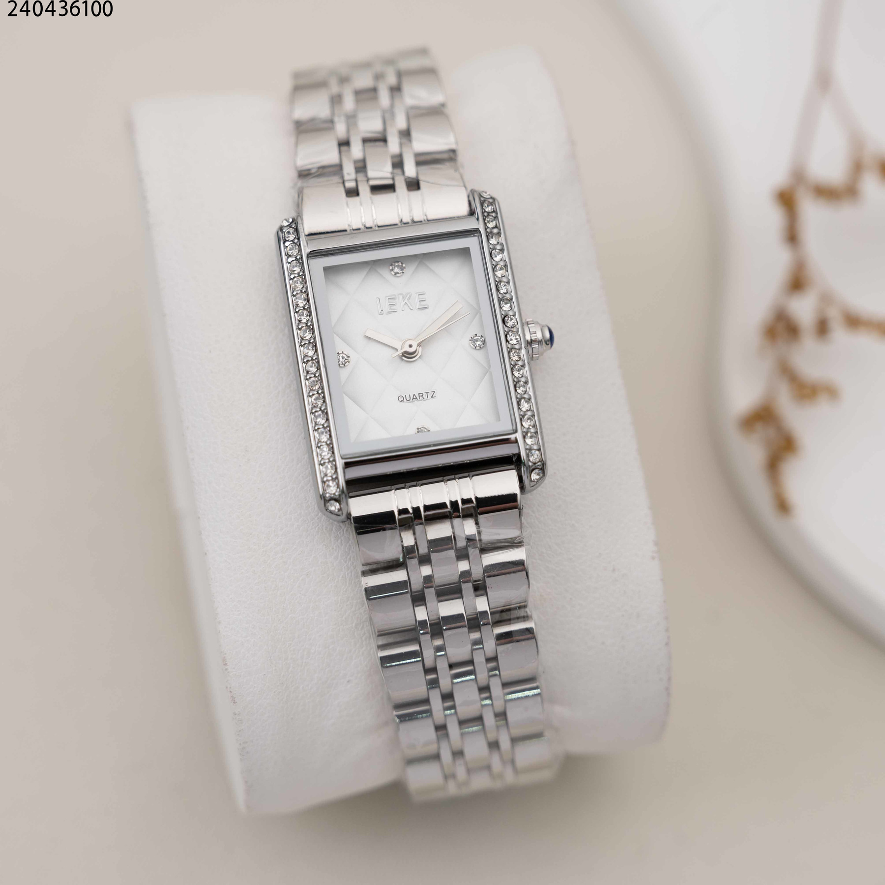 ساعة نسائية مستطيلة مع زركون وحزام معدني