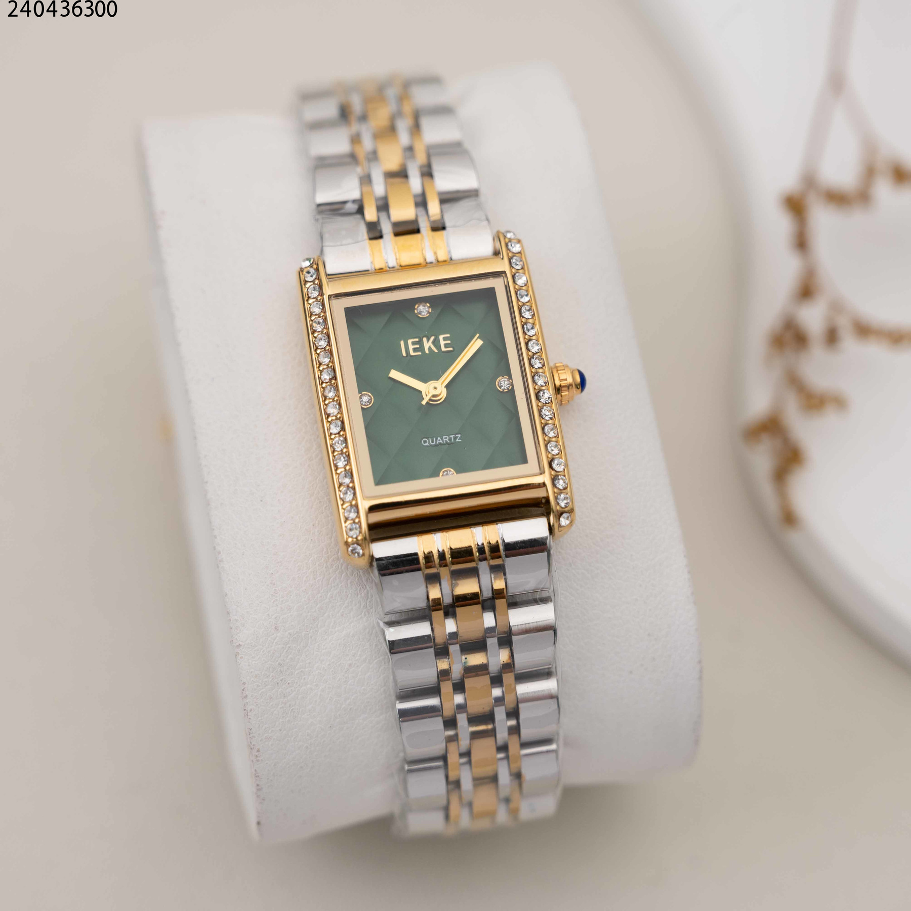 ساعة نسائية مستطيلة مع زركون وحزام معدني
