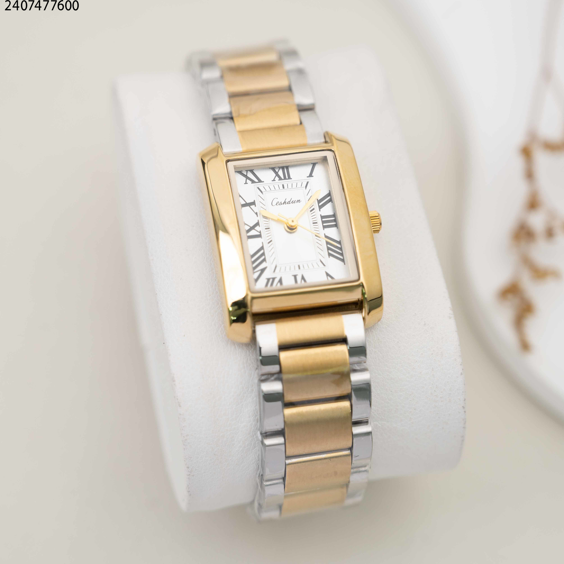 ساعة نسائية مستطيلة مع زركون
