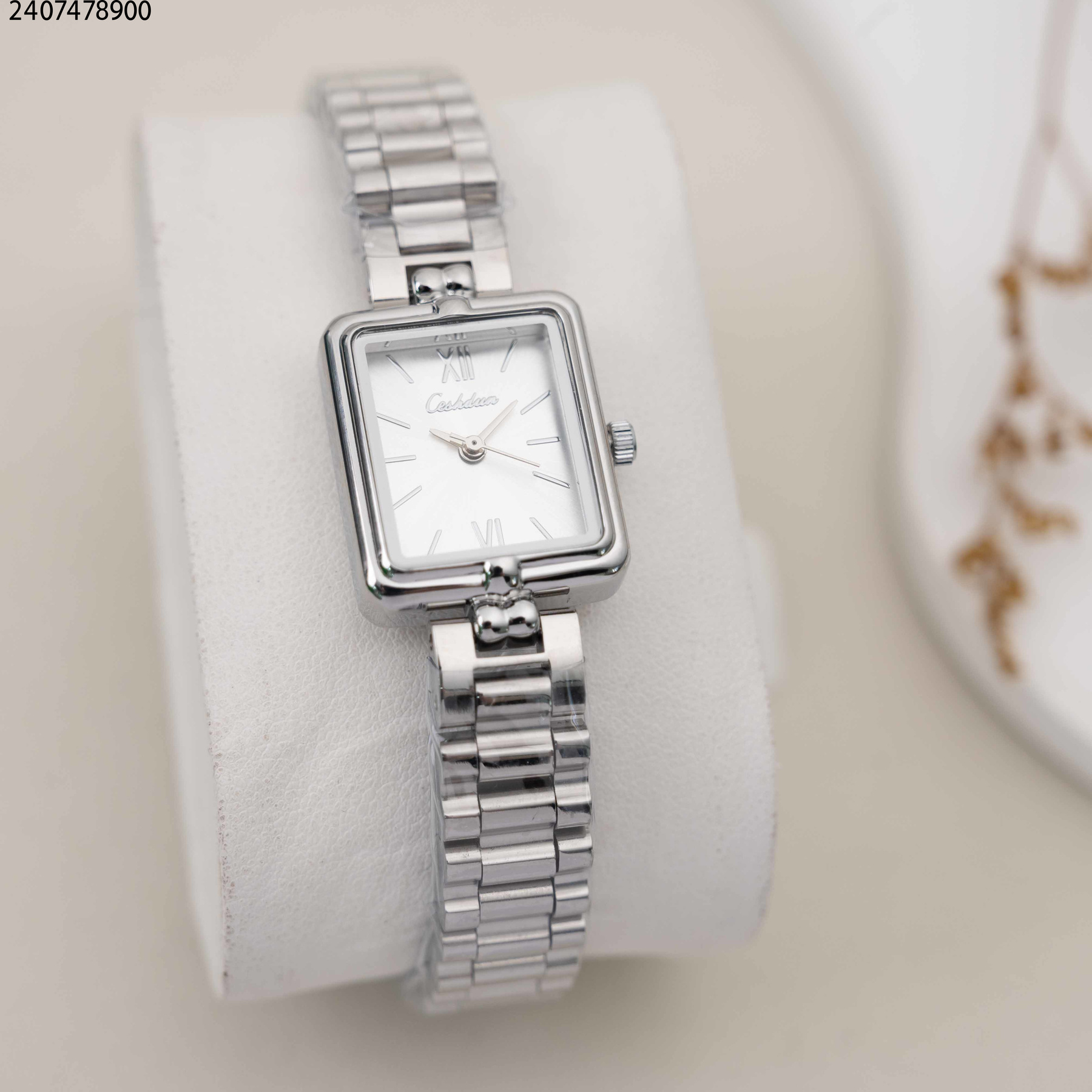ساعة نسائية مستطيلة مع زركون