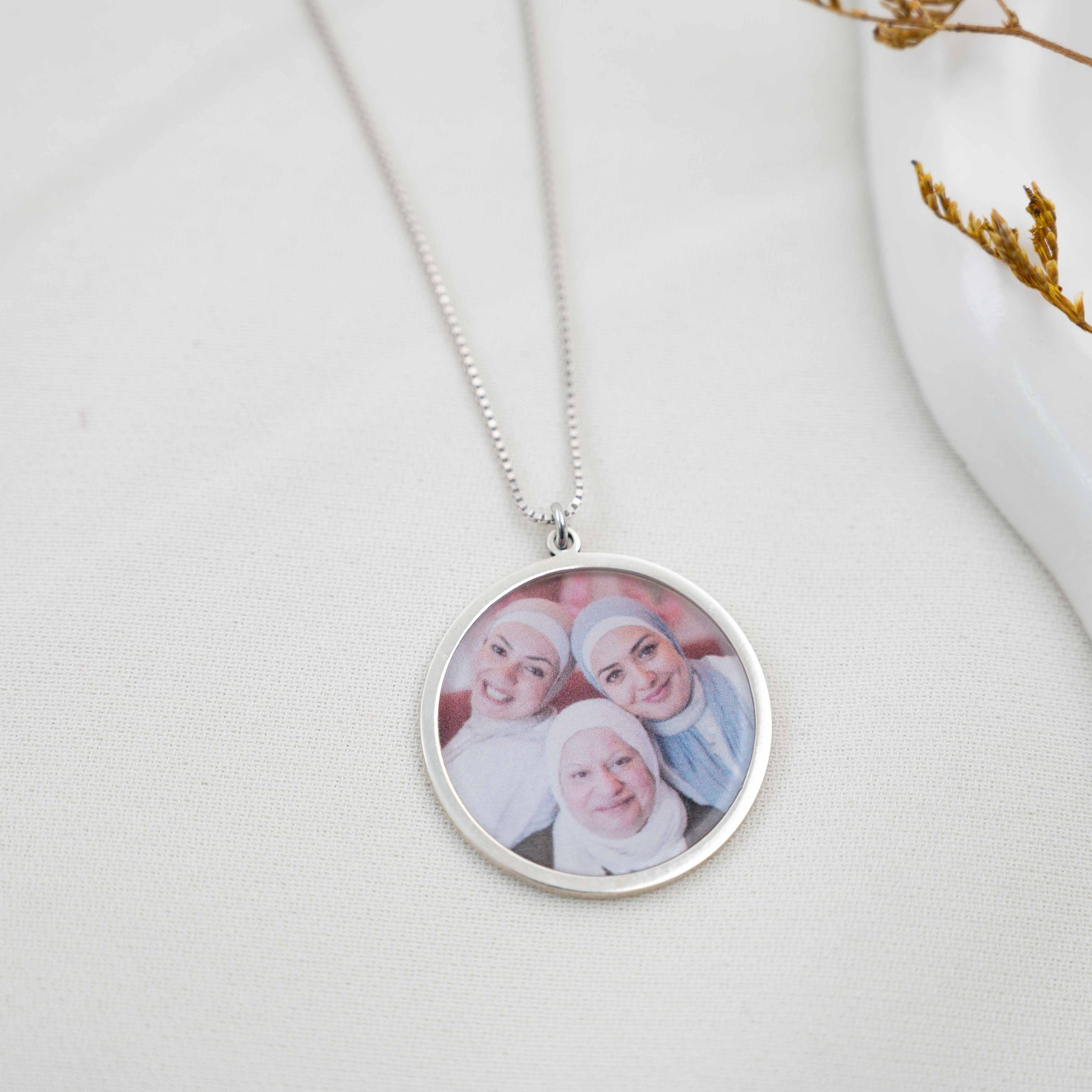 سنسال صورة فضة بتصميم دائري الشكل يتيح لك الاحتفاظ بصورة شخص عزيز مع إضافة طبقة من الريزن للحماية. هذا السنسال يجمع بين الأناقة والقيمة العاطفية، ليصبح ذكرى خالدة تعبر عن الحب والتقدير. مصنوع من الفضة الأصلية عيار 925 .