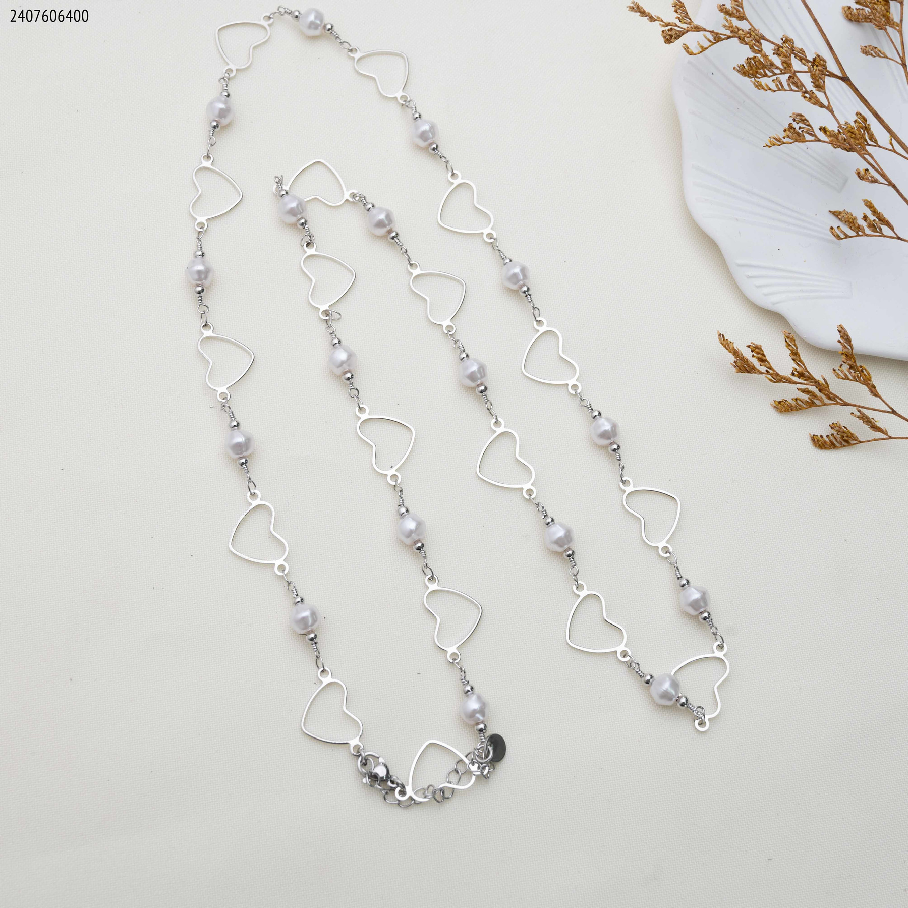 سنسال حبات لولو قلوب مع حلقات قلوب