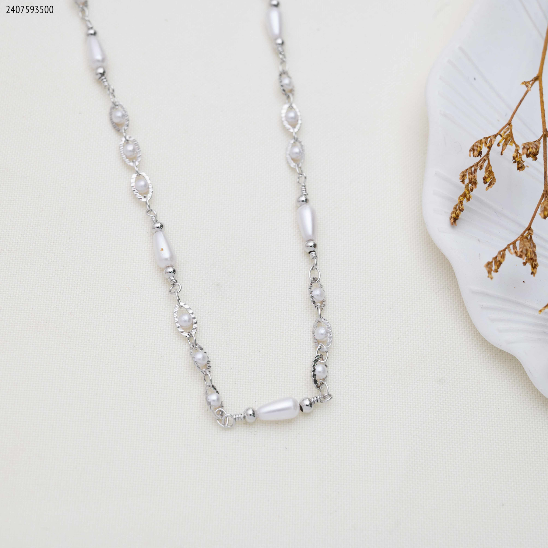 سنسال حبات لولو مع حلقات حبات لولو صغير